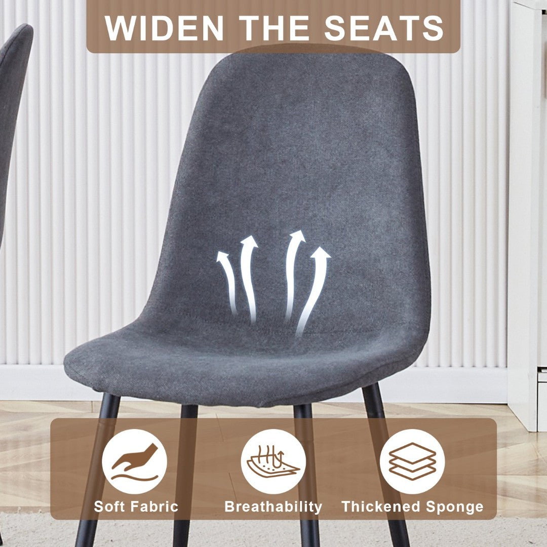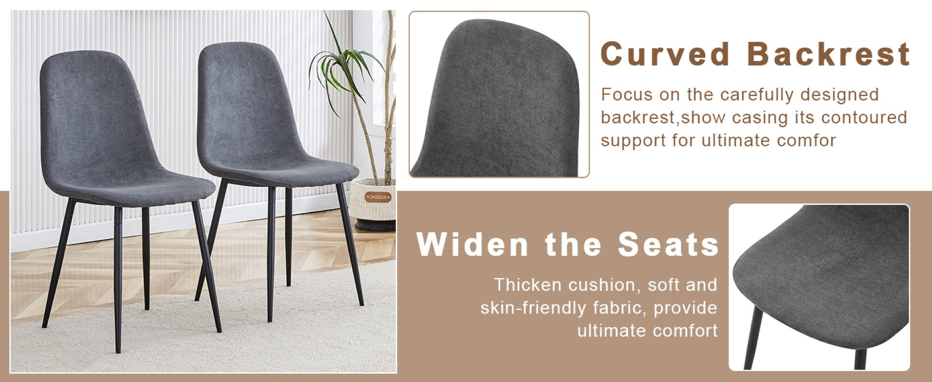 - Dark Grey Linen-Cotton Texture: The dining chairs are made of dark grey linen-cotton fabric, with integrated seat and backrest design, solid color style, breathable and soft comfort,offering a warm and comfortable touch while presenting an elegant home atmosphere.