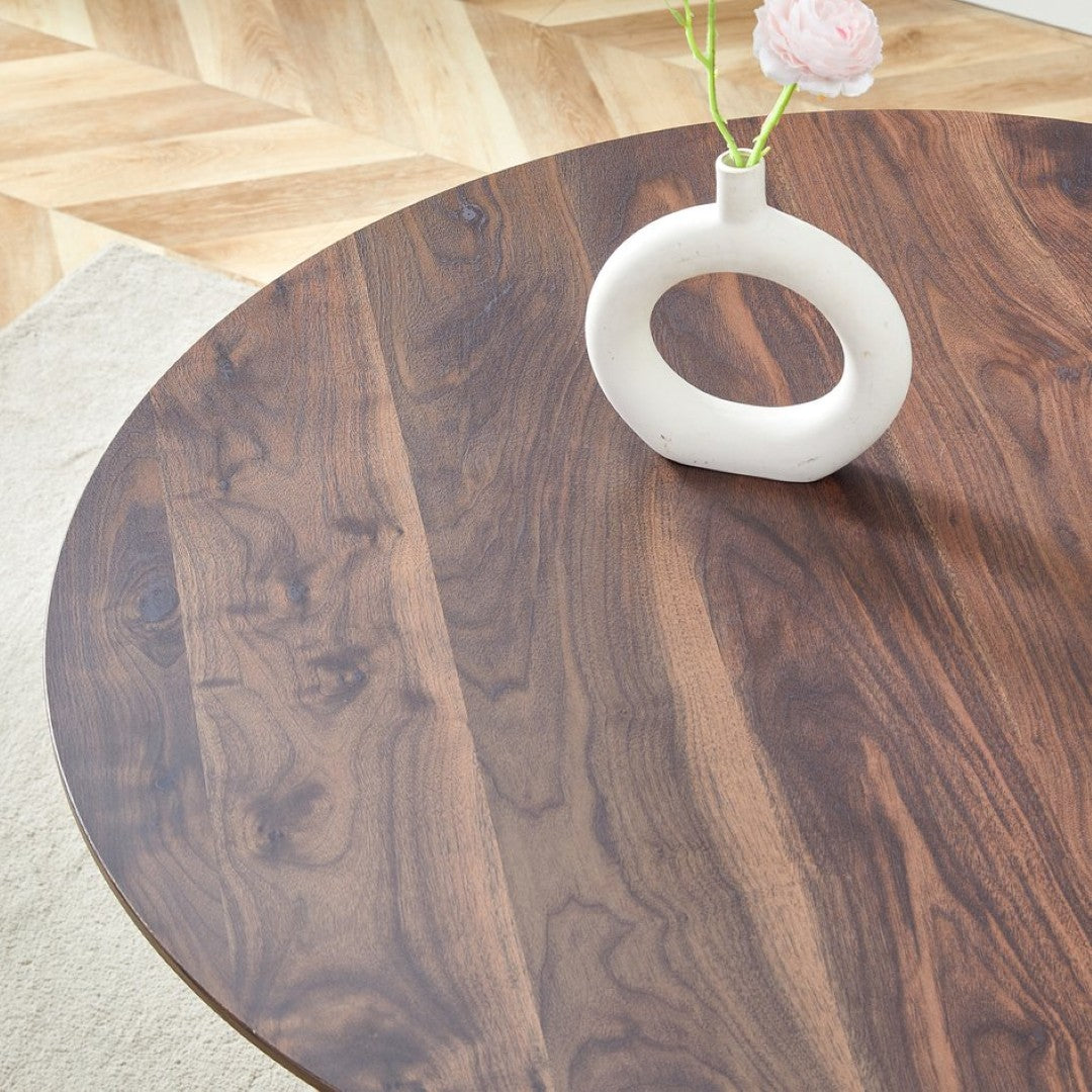 - Tabletop: 42-inch diameter MDF tabletop with dark walnut textured finish for a natural, warm appearance.