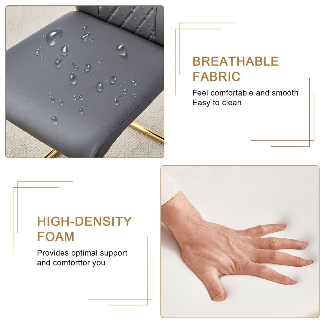 - Chairs — comfort and style: Eight dark gray PU chairs feature grid-patterned backrests, sponge-filled cushions for soft support, and easy-to-clean surfaces.