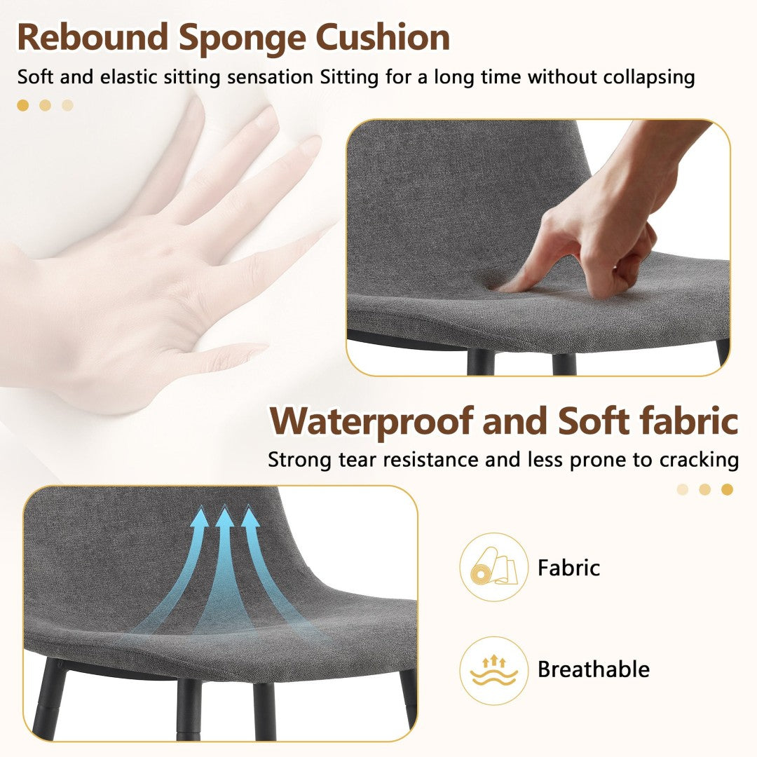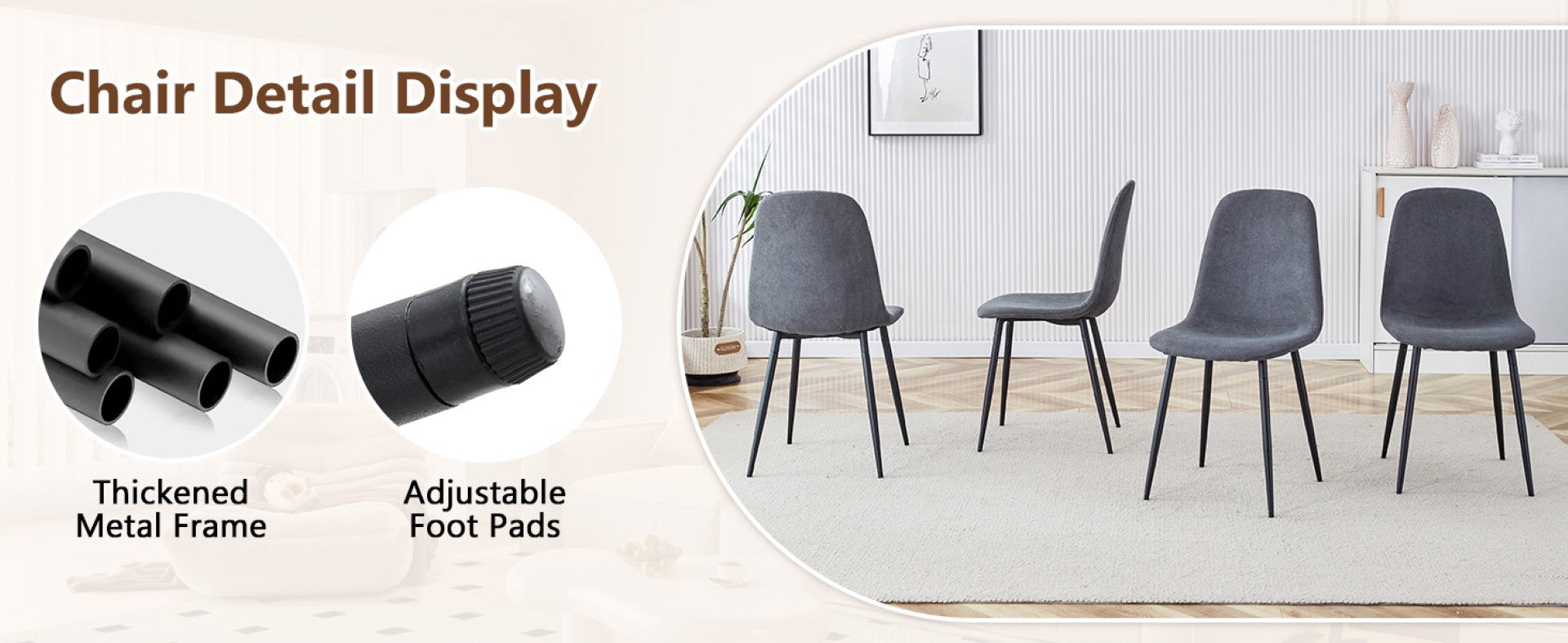 - Dark Grey Linen-Cotton Texture: The dining chairs are made of dark grey linen-cotton fabric, with integrated seat and backrest design, solid color style, breathable and soft comfort,offering a warm and comfortable touch while presenting an elegant home atmosphere.