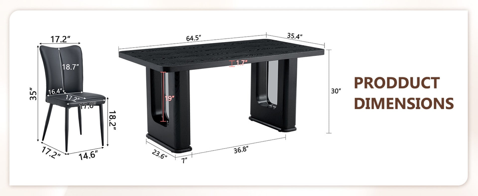 - Table size (reference from title): 64.5 x 35.4 inches table top (stylish black wood color textured finish)