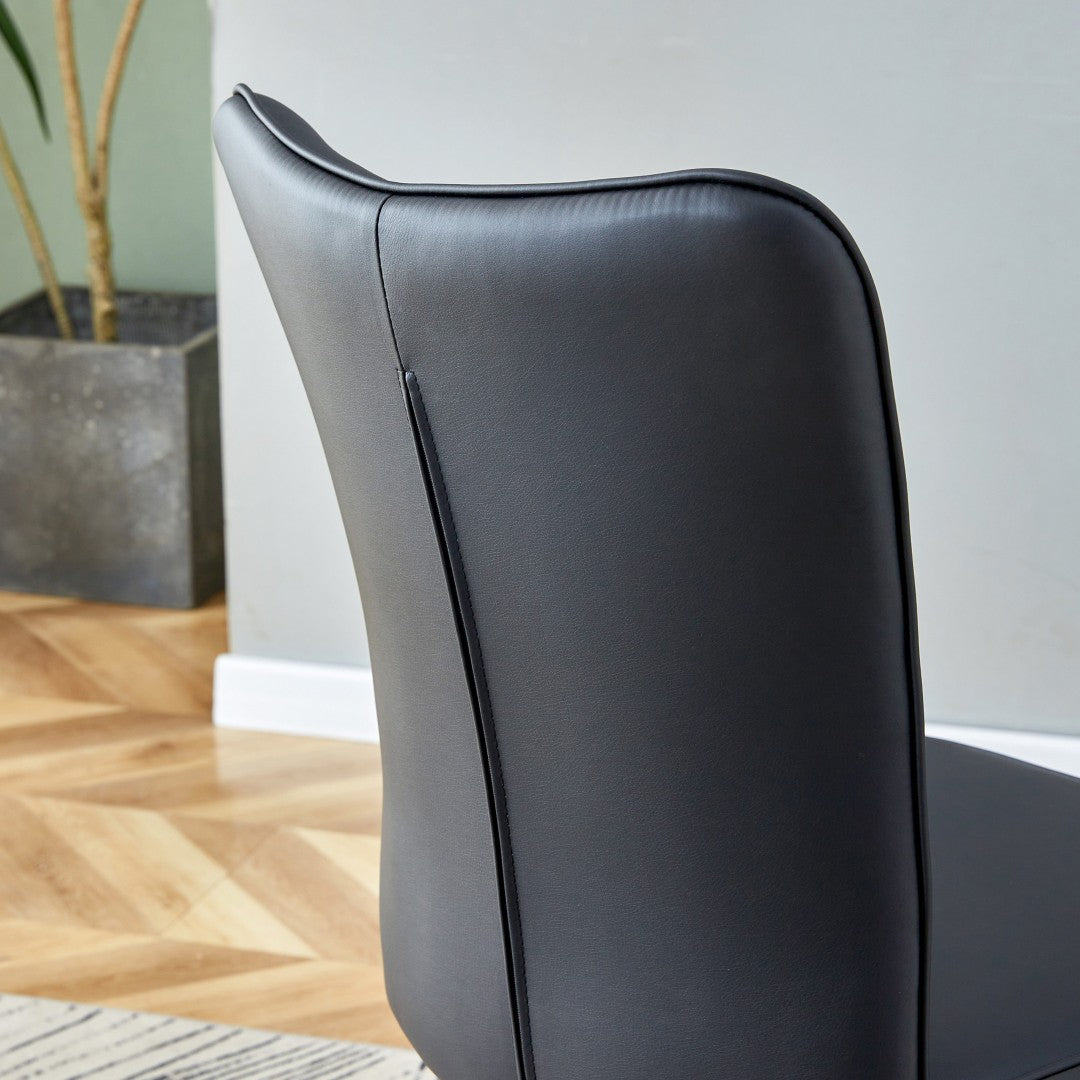 - PU Material for Comfort: The black chairs are made of PU material, with a vertical line design on the backrest that adds aesthetic detail while offering a soft and comfortable seating experience.