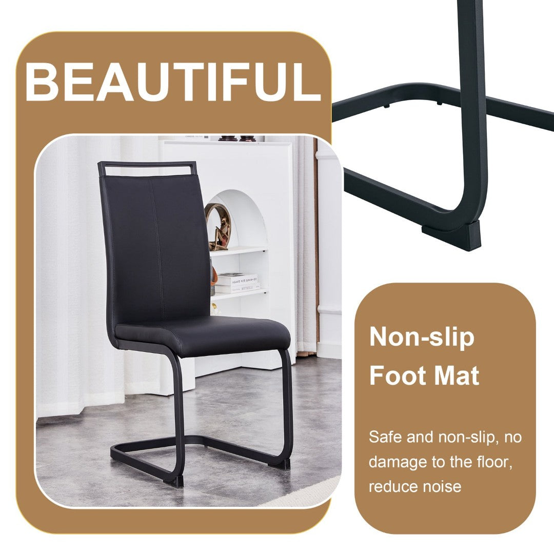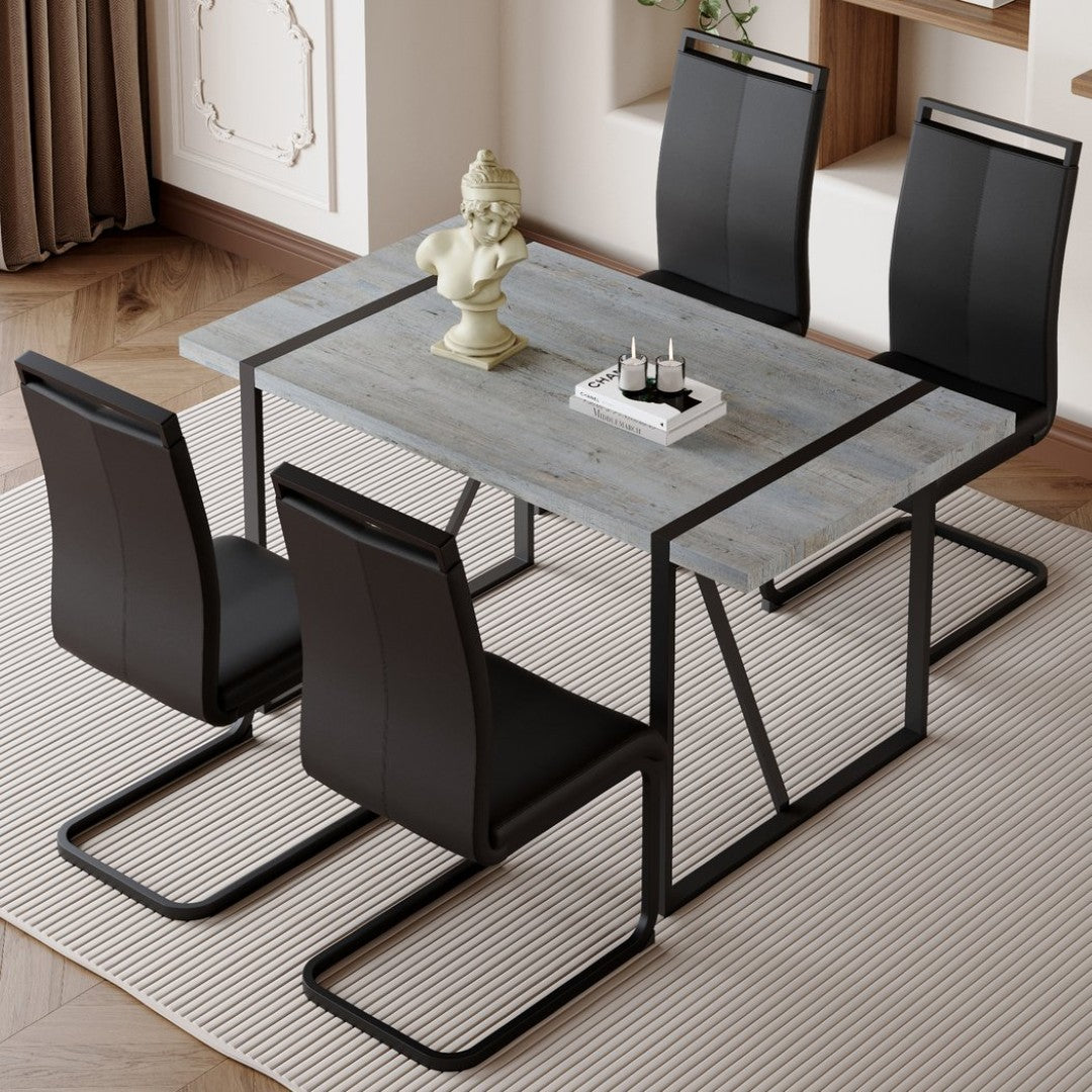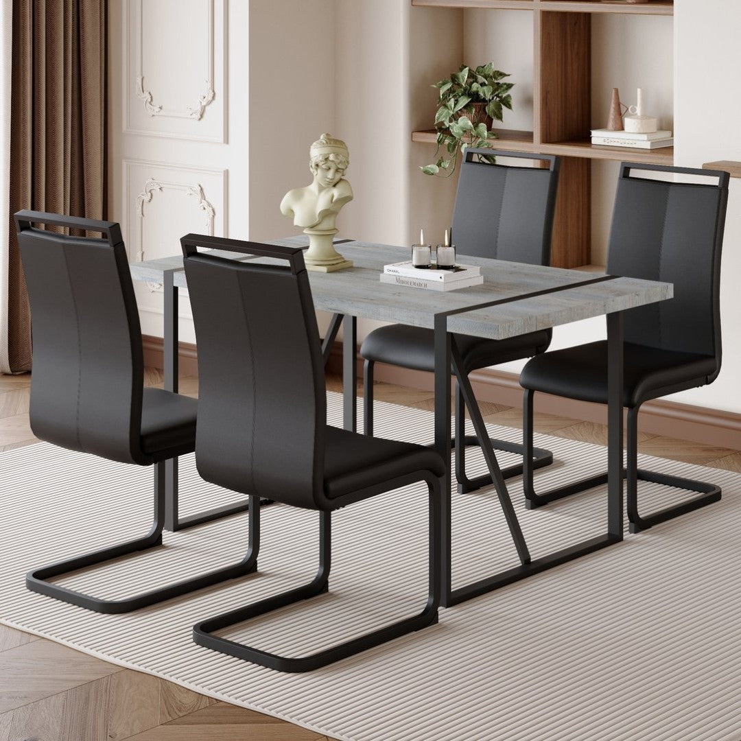 Elevate your dining space with this modern, minimalist table and chair set that blends contemporary aesthetics with everyday functionality. The set pairs a grey marble-textured MDF dining table and a sturdy black metal frame with four black PU leather chairs featuring elegant arched legs — a cohesive look that suits small to medium dining rooms, kitchens, or open-plan living areas. Designed for comfort, easy maintenance, and lasting stability, this set makes meals and gatherings both stylish and practical.
