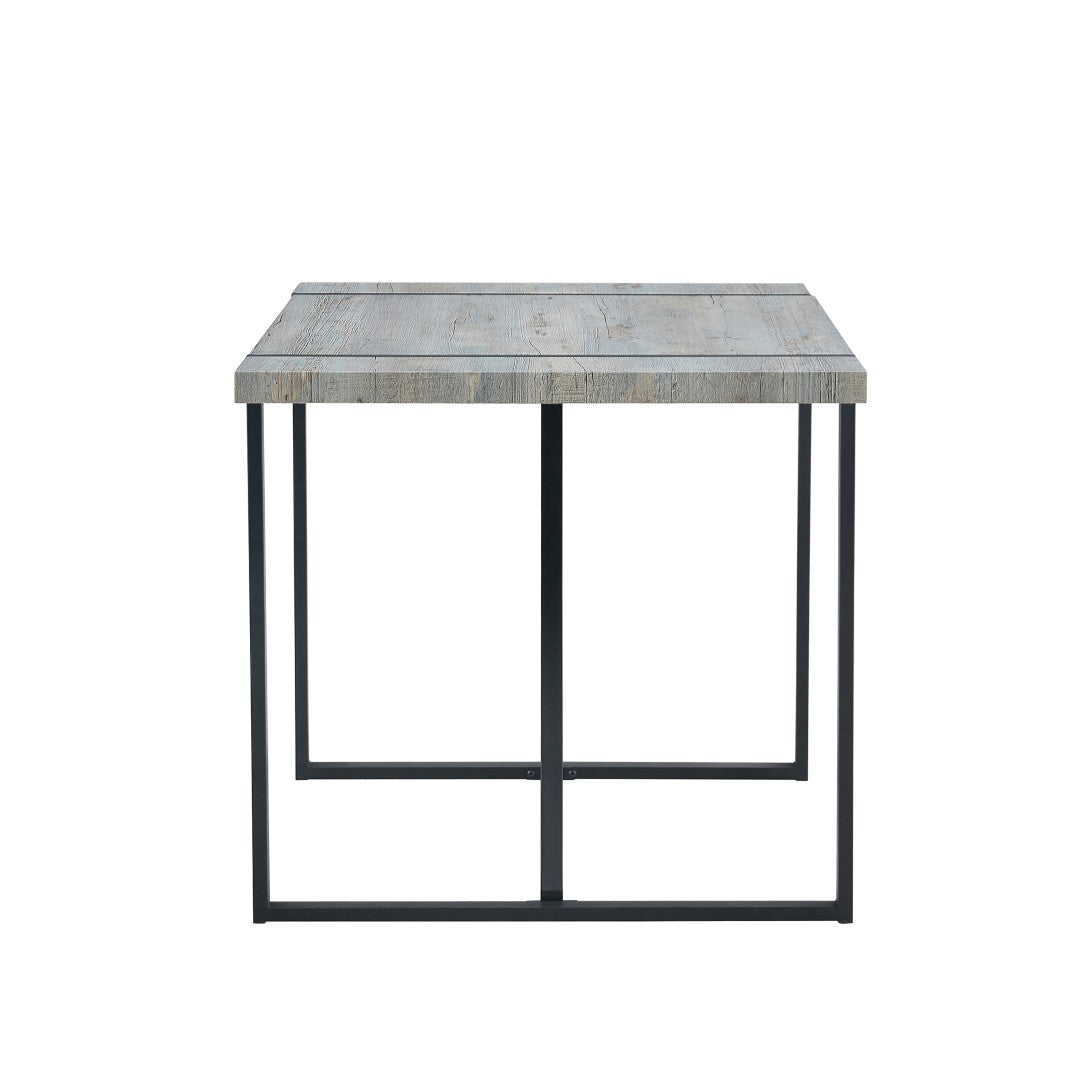 - Modern marble textured top: The table features a grey grain MDF top that combines durability and a modern aesthetic. Black Metal Support Legs: The square black metal support legs provide a sturdy base for the table and contrast with the tabletop, adding a touch of modernity.