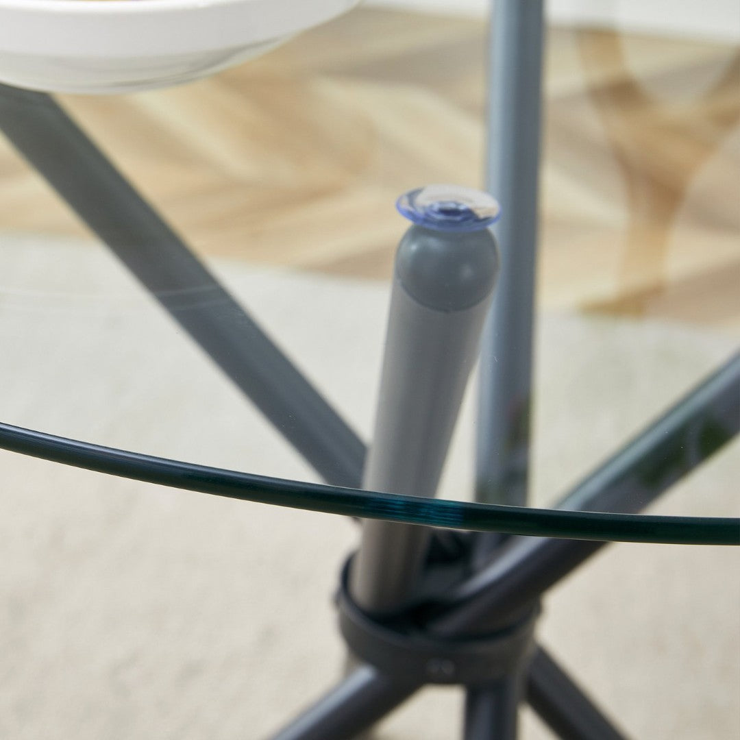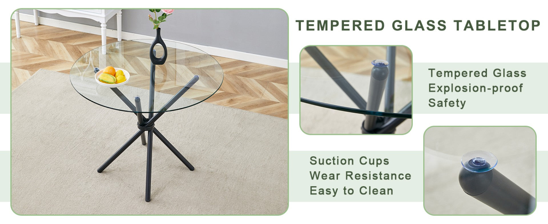 - Round Tempered Glass Tabletop: Clear, polished-edge tempered glass for safety, durability, and effortless cleaning; resists scratches and staining from daily use.