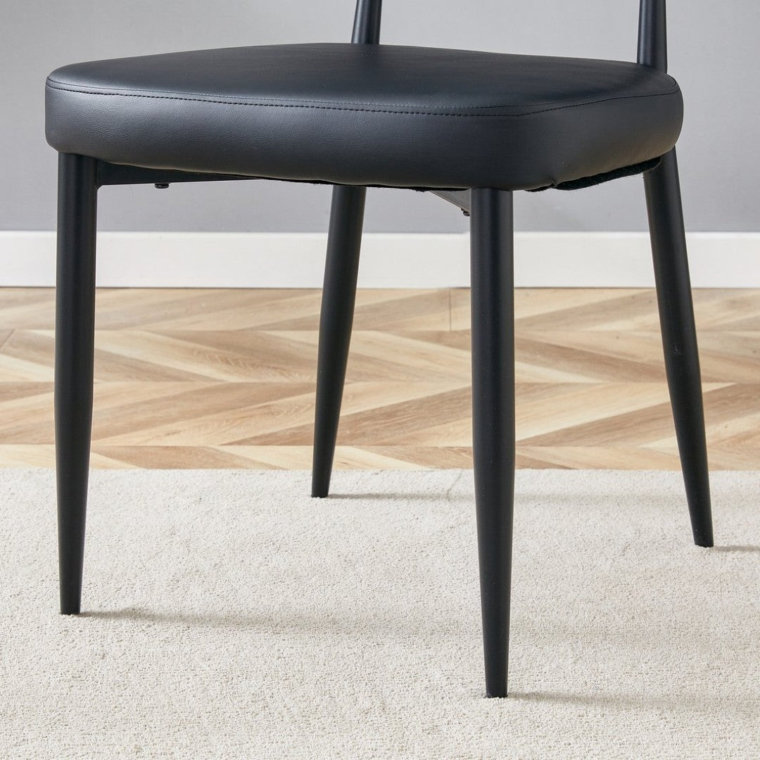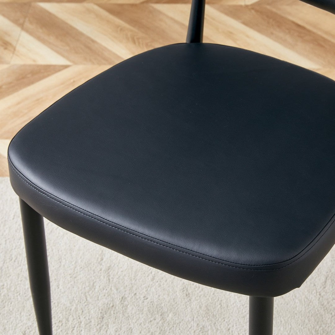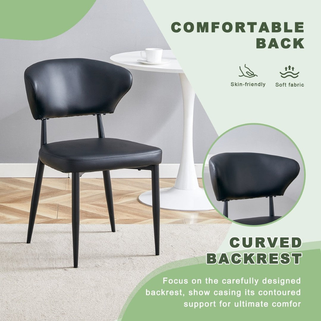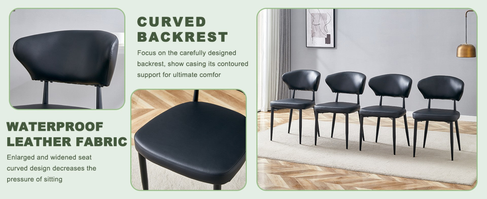 - Ergonomic PU Chairs: Four black PU leather chairs feature a curved backrest that follows the spine’s natural curve to relieve back pressure and provide comfortable support.