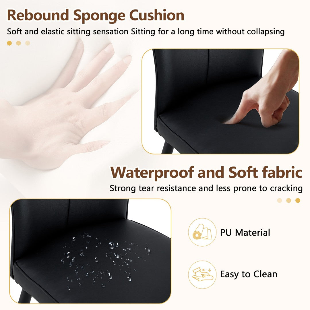 - PU Material for Comfort: The black chairs are made of PU material, with a vertical line design on the backrest that adds aesthetic detail while offering a soft and comfortable seating experience.