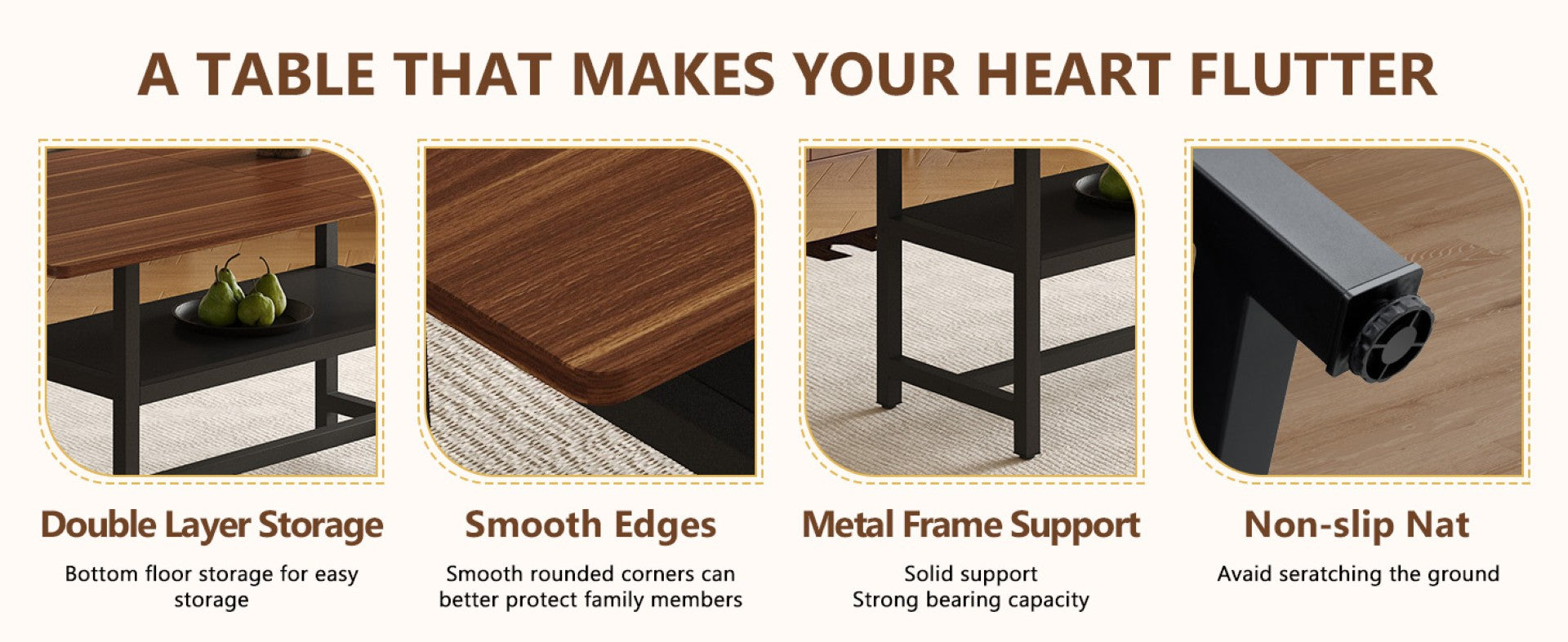 - Unique desktop: The desktop is made of MDF material, 4 walnut textured tabletops cleverly pieced together. The 1-inch thick tabletop not only has a rich texture, but also effectively resists scratches and wear during daily use, and is easy to clean.