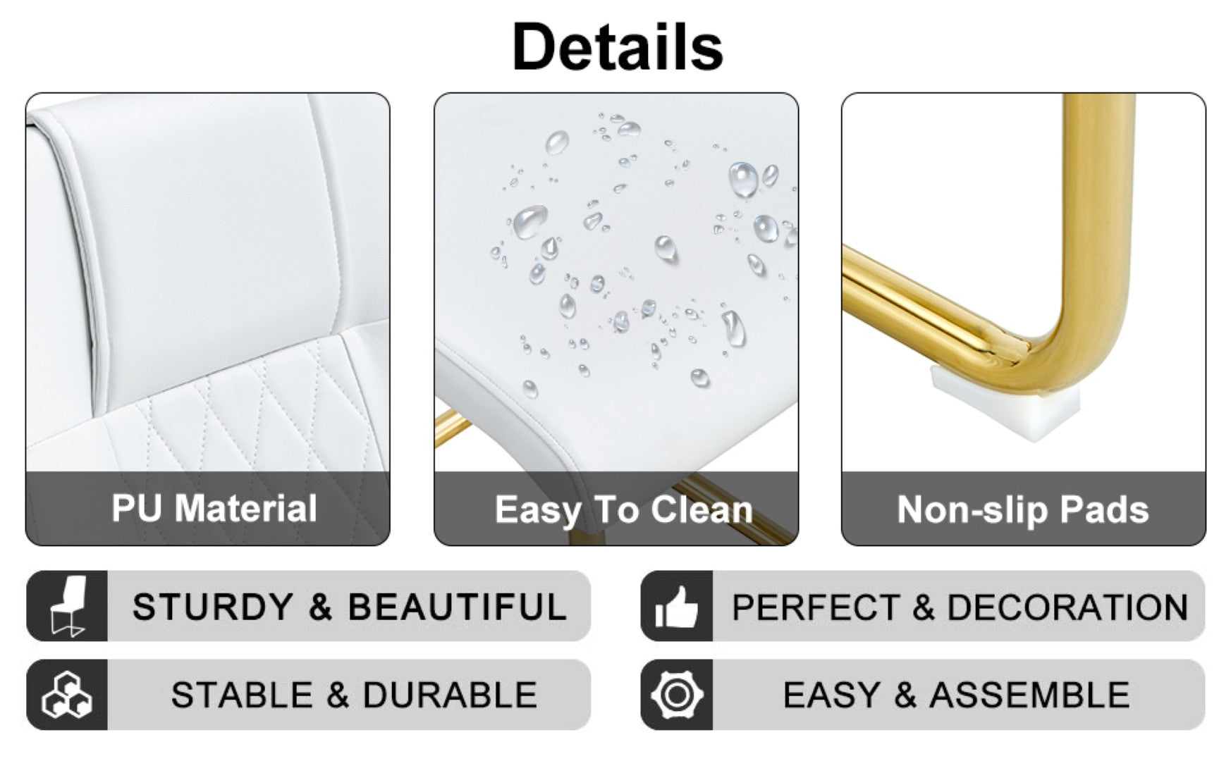 - Comfort & stability: Cushioned PU seats for easy maintenance; metal frames provide durable, stable support.