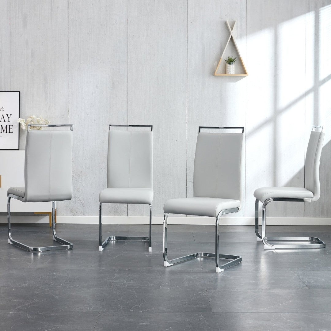 - Seating: Includes 8 chairs upholstered in light-gray PU with comfortable, resilient cushioning for long-lasting comfort.