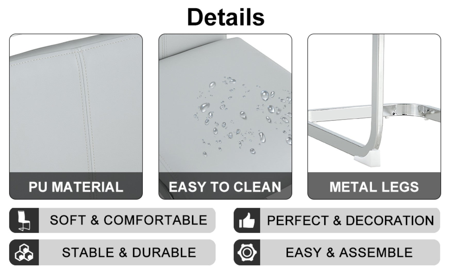 - Chair Frame: Silver C-tube arched metal legs offer strong support and modern styling, plus anti-slip protective feet to prevent floor damage.