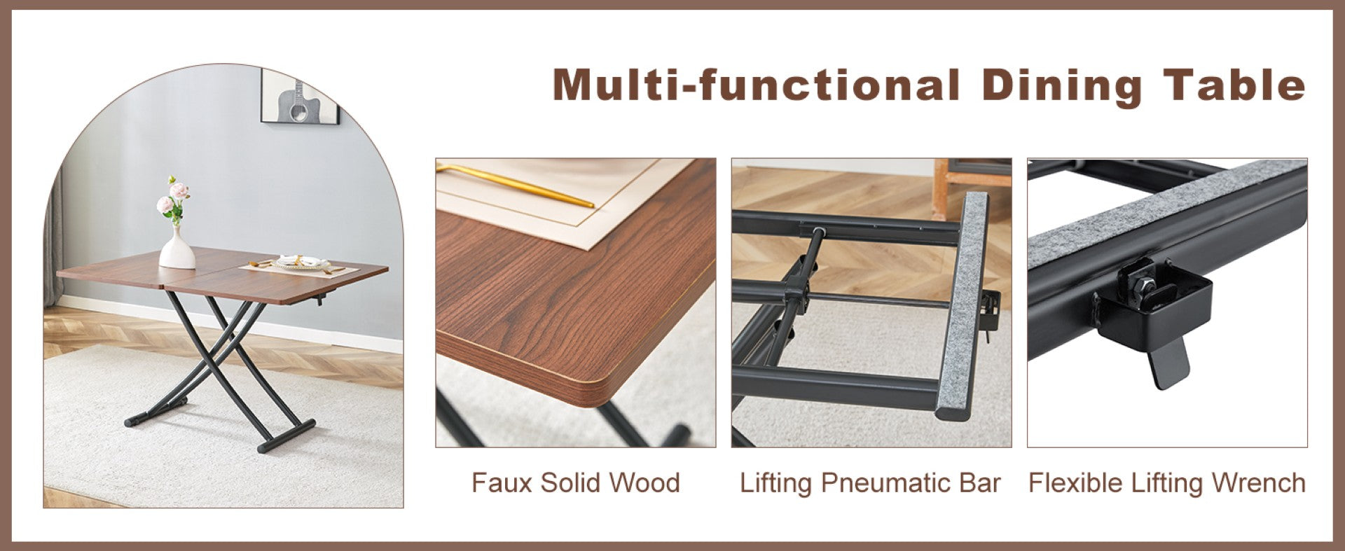 - Walnut textured desktop, simulating natural wood grain texture, bringing a warm atmosphere to your home.Versatility: The dining table can be used as a coffee table, dining table, study table, bar table, etc.With multiple forms adjustable to your preference.