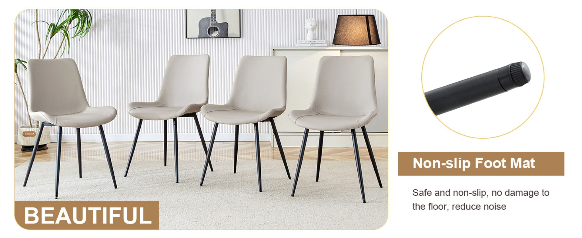 - The simple and contemporary design fits for people's simple attitude towards life and present a chic and fashionable lookNon-slip pads on the bottom of the chairs legs prevent scratching your beautiful carpet and floor, ensure stability.