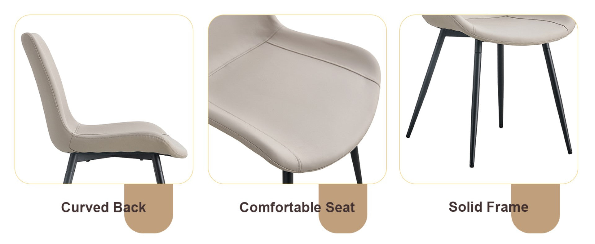 - Artificial leather backrest cushion dining chair, black metal legs, curved widened cushion design for more comfort, suitable for restaurants, kitchens, bedrooms, office.