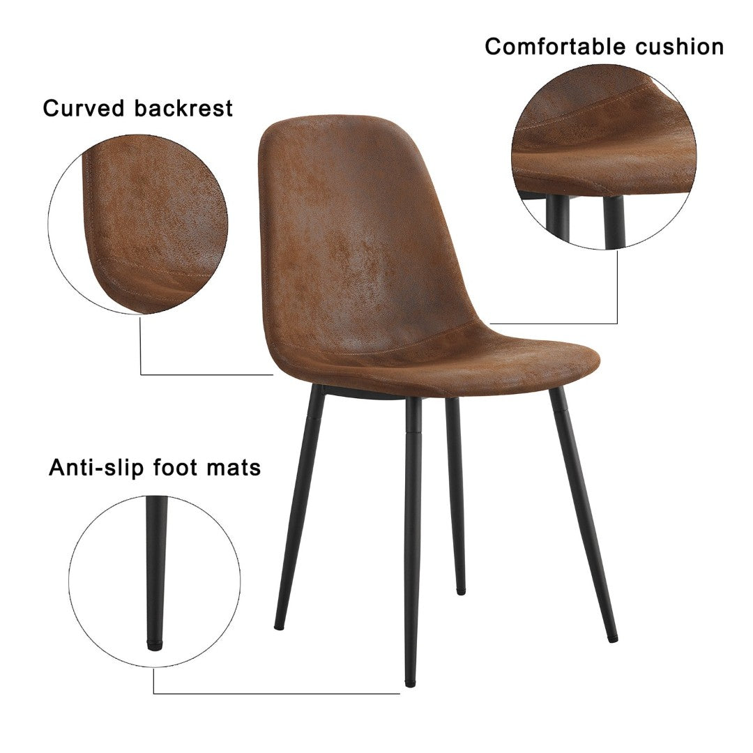 Elevate your dining area with this modern medieval-inspired table and four upholstered side chairs. The set combines warm brown techno-fabric seating, clean black metal legs, and a durable MDF tabletop to deliver a comfortable, stylish, and easy-to-maintain ensemble that suits everyday meals and casual entertaining.