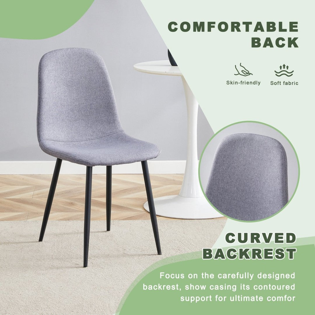 - Chair details: Set includes 4 light gray dining chairs upholstered in breathable linen-cotton fabric with integrated seat and back design for streamlined support and contemporary appeal
