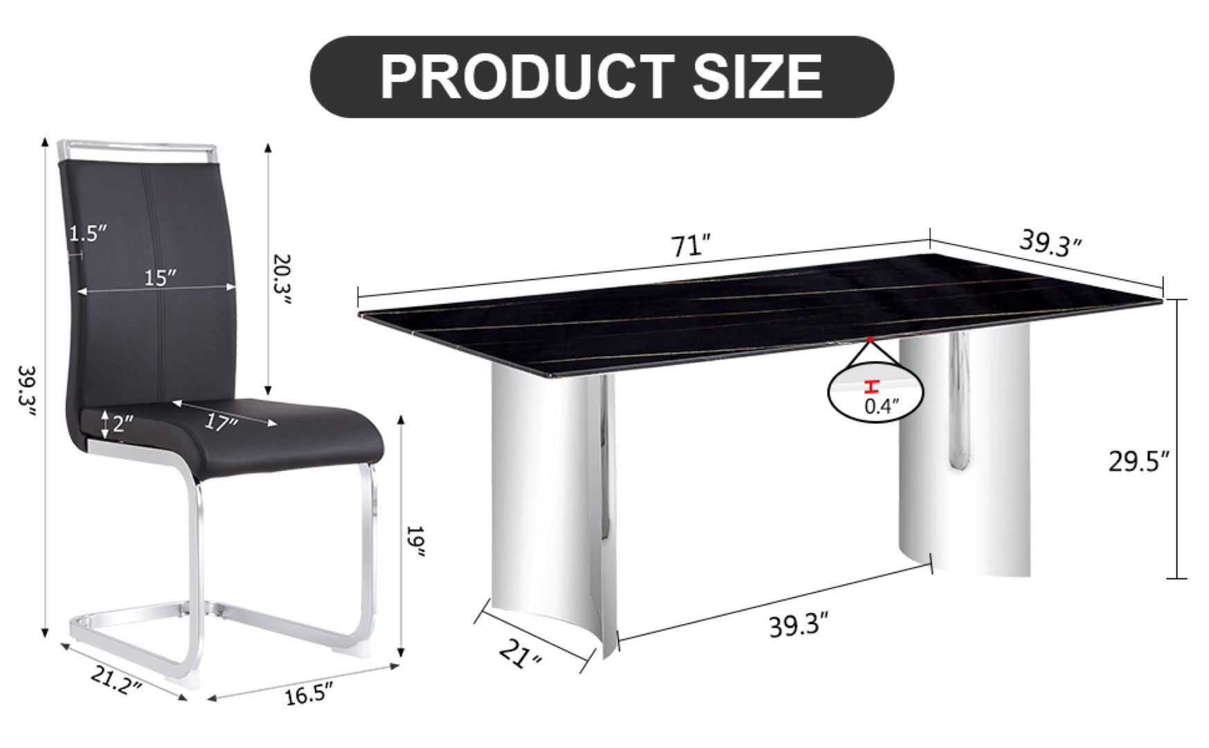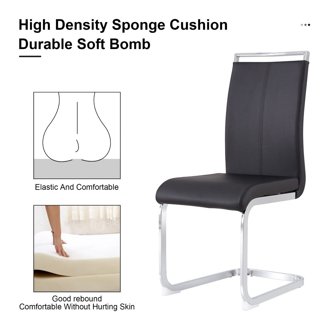 - Included: 1 table with tempered glass top and 6 black PU upholstered chairs with silver C-tube metal legs