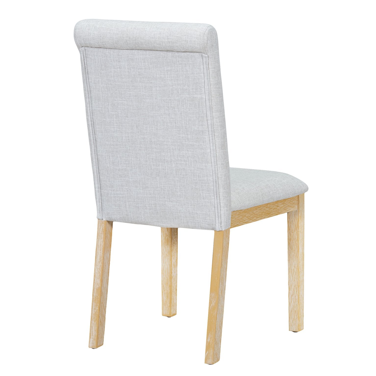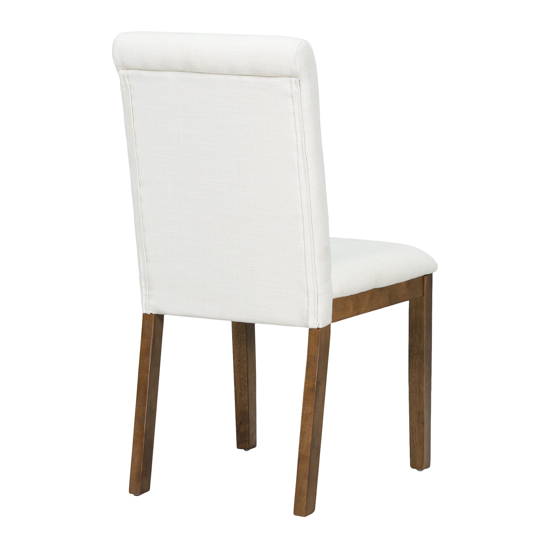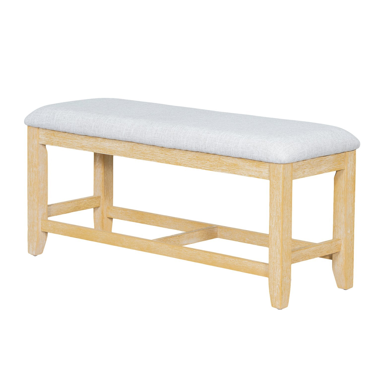 - Comfortable seating: Four upholstered linen-finish chairs with foam cushions and ergonomic back support plus a longer bench with stretcher for versatile seating arrangements.