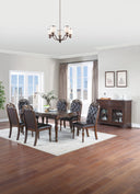 - Set Configuration: 7-piece dining set — 1 rectangular dining table and 6 side chairs (server not included).
