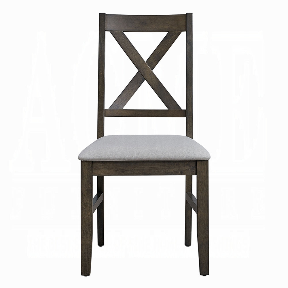 Elevate your dining space with this transitional 6-piece set, expertly combining modern lines and rustic charm. The X-shaped details on the table legs and chair backs create visual interest while the padded seat cushions provide everyday comfort for family meals and casual entertaining. Durable gray finish and solid construction make this set a practical, stylish choice for kitchens and dining rooms.