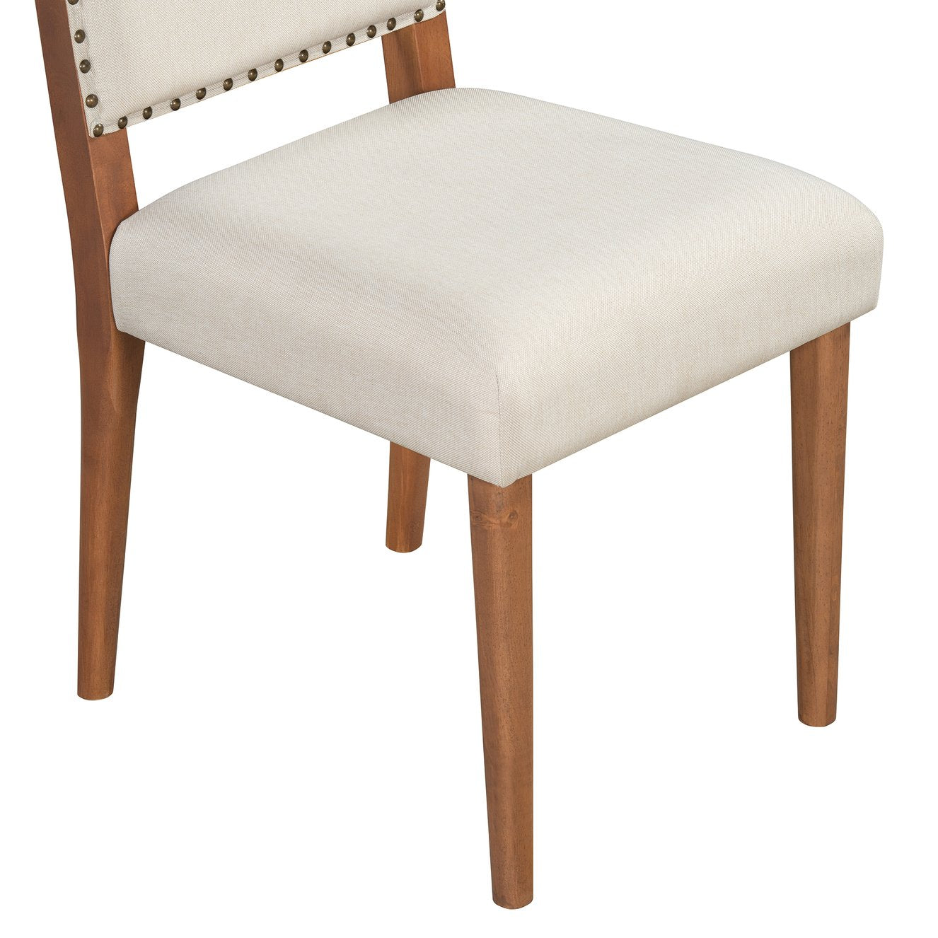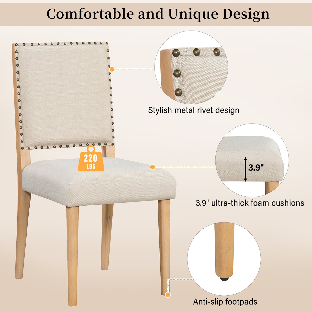 - Comfort & Design: Upholstered chairs feature 3.9" high-density foam cushions with breathable fabric, trapezoidal backrests with subtle metal rivet accents, and non-slip footpads to protect floors.