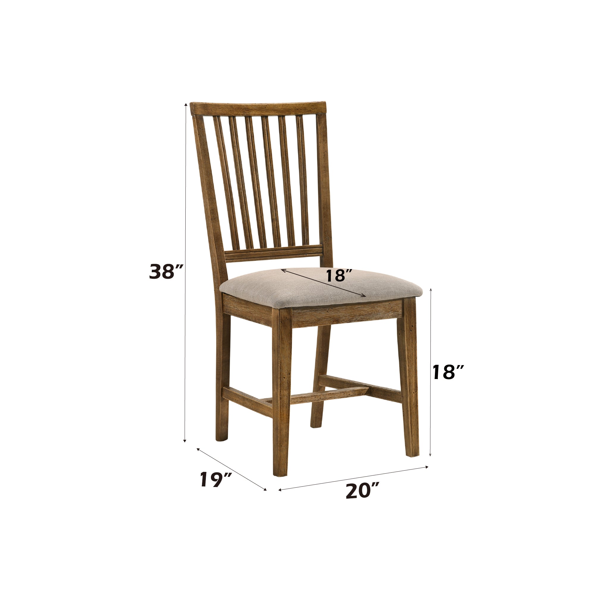 - Side dining Chair overall dimension: 19"D x 20"W x 38"H, weight capacity: 220lbs