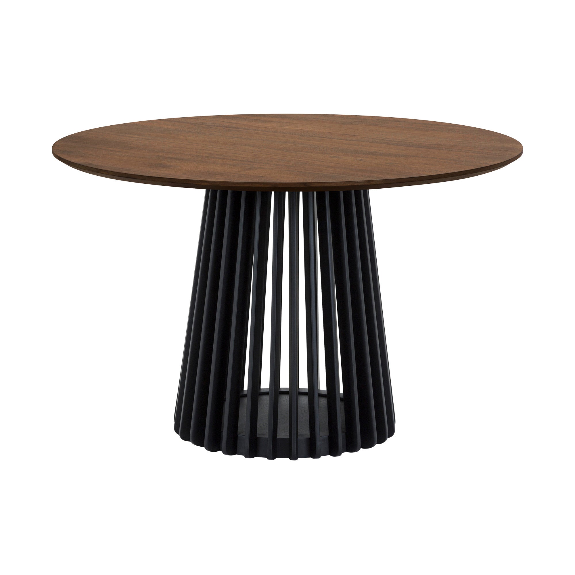 - Manufactured wood table top with a solid wood base.