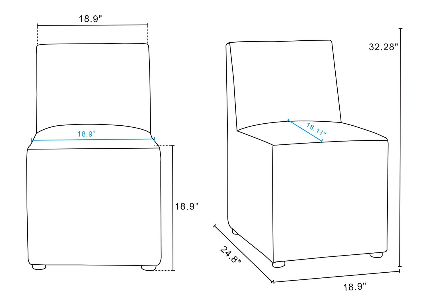 - Measures: 18.9L x 32.28H x 24.8D.