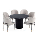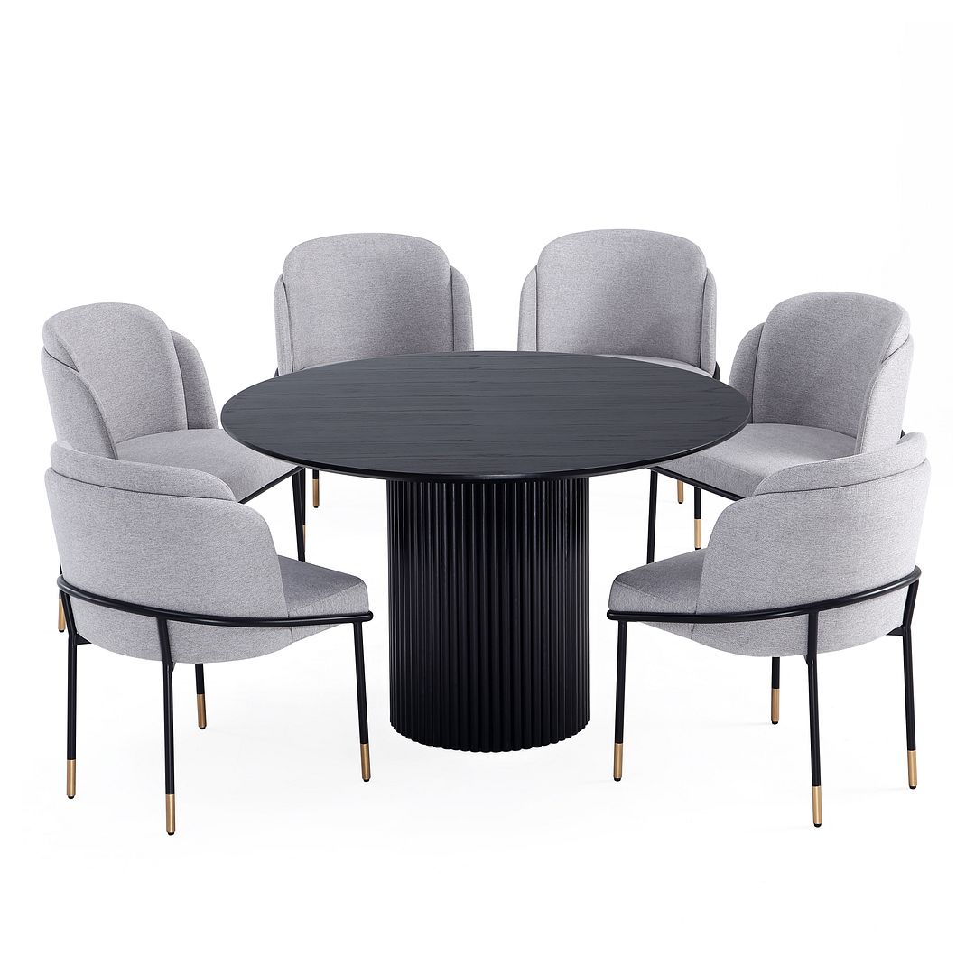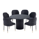 Description for 6-DT05DC052-BK Manhattan Comfort 7-Piece Hathaway Modern 59.05 Solid Wood Round Dining Set in Black with 6 Flor Velvet Upholstered Dining Chairs in Black
