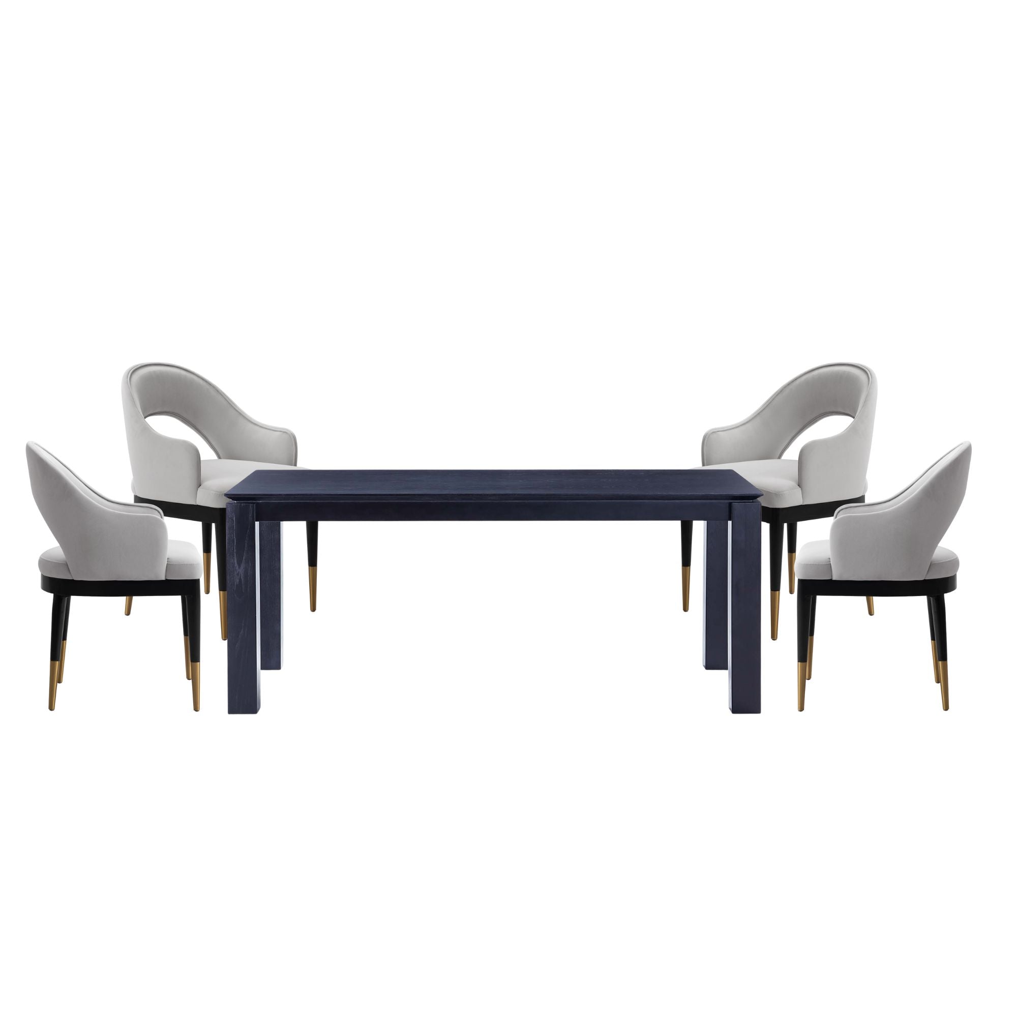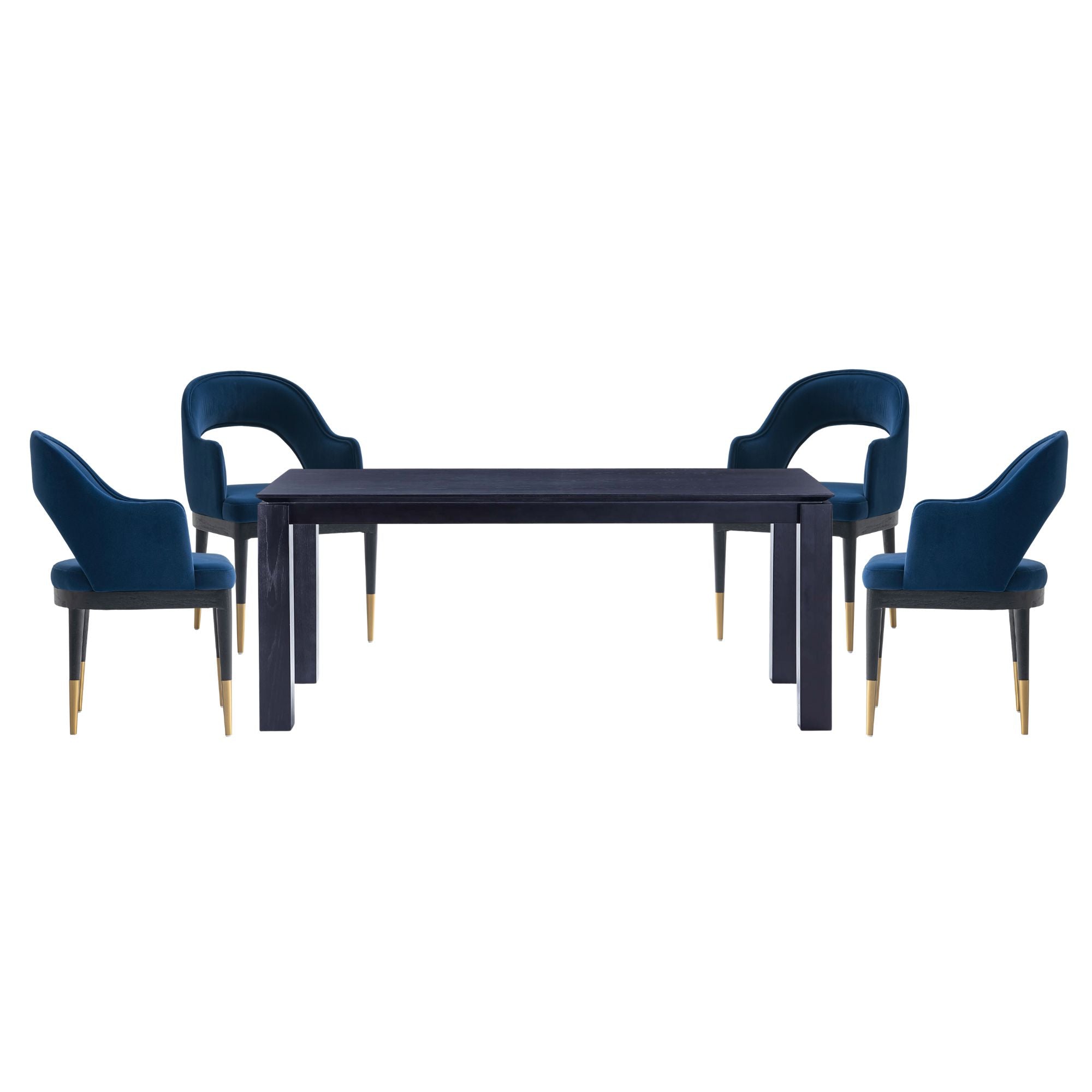 Description for 4-DT02DC089AR-NABL Manhattan Comfort 5-Piece Rockaway Modern 70.86 Solid Wood Dining Set in Natural with 4 Carrington Dining Chairs in Midnight Blue