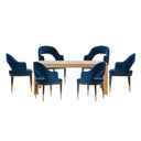 Description for 6-DT02DC089AR-NABL Manhattan Comfort 7-Piece Rockaway Modern 70.86 Solid Wood Dining Set in Natural with 6 Carrington Dining Chairs in Midnight Blue