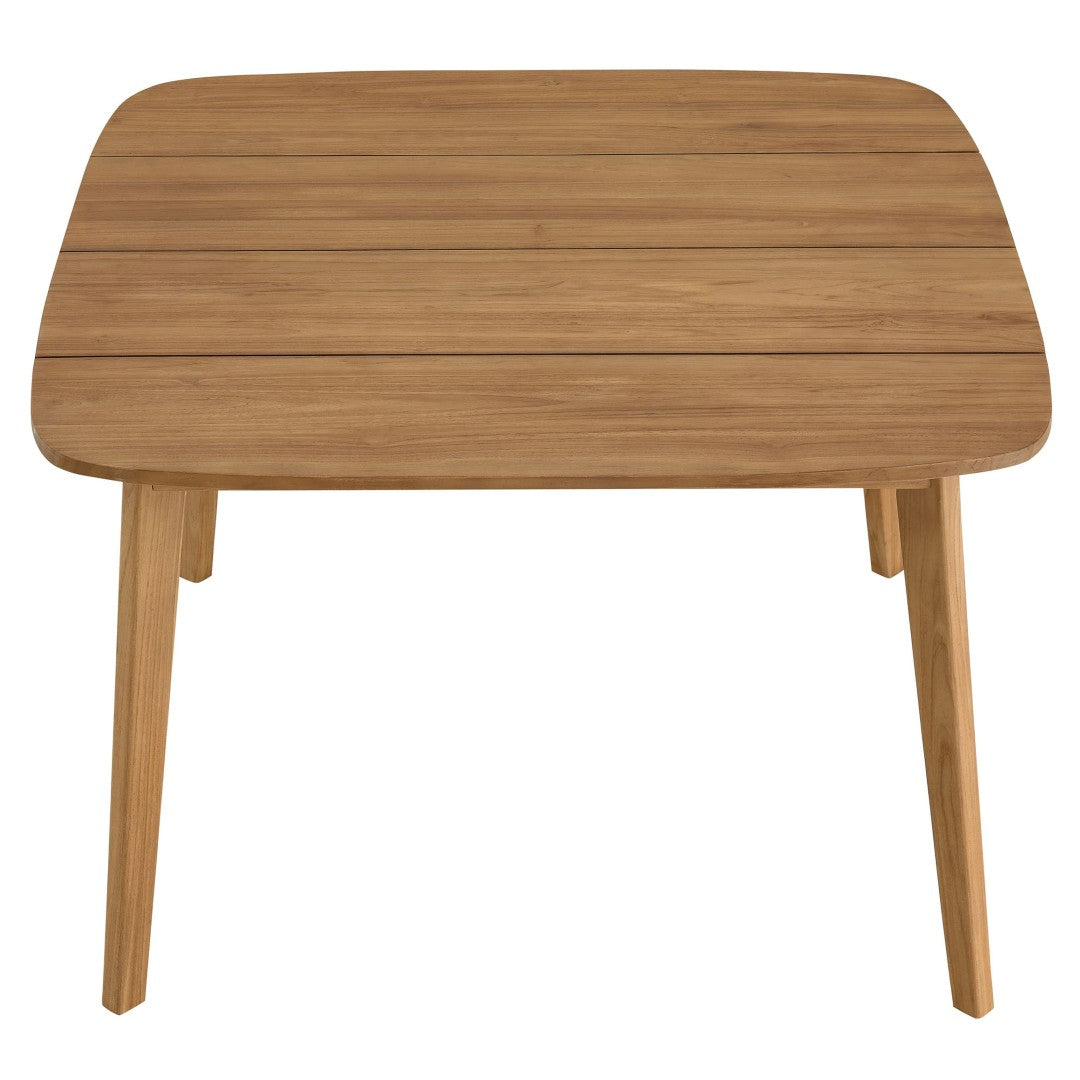 - Slatted teak tabletop promotes drainage and reduces pooling while adding refined visual texture.