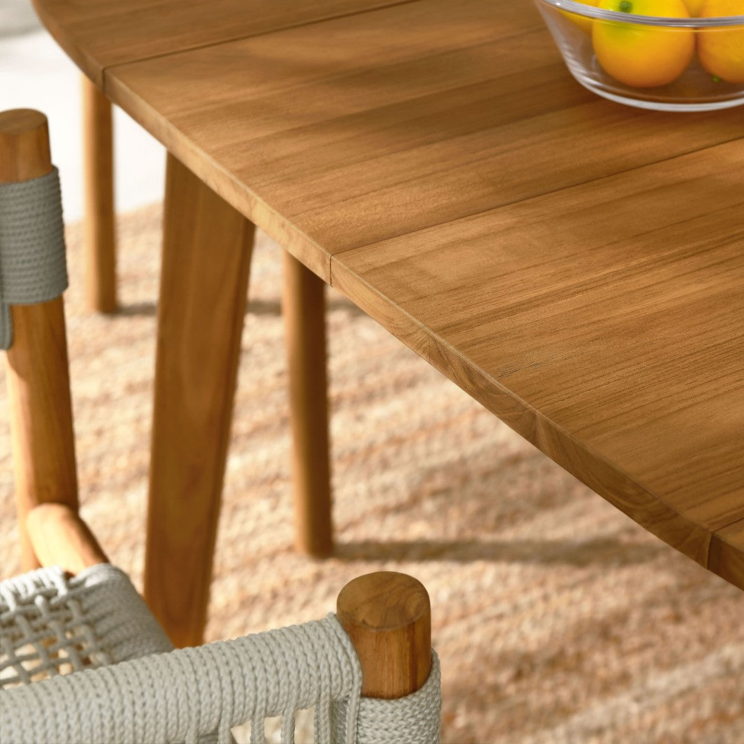 Refresh your outdoor dining space with a stylish and durable 5-piece teak and rope set designed for everyday use and casual entertaining. This cohesive ensemble pairs a solid teak square table with four comfortable, foldable armchairs that combine natural materials and modern lines to create a relaxed, contemporary patio look.