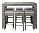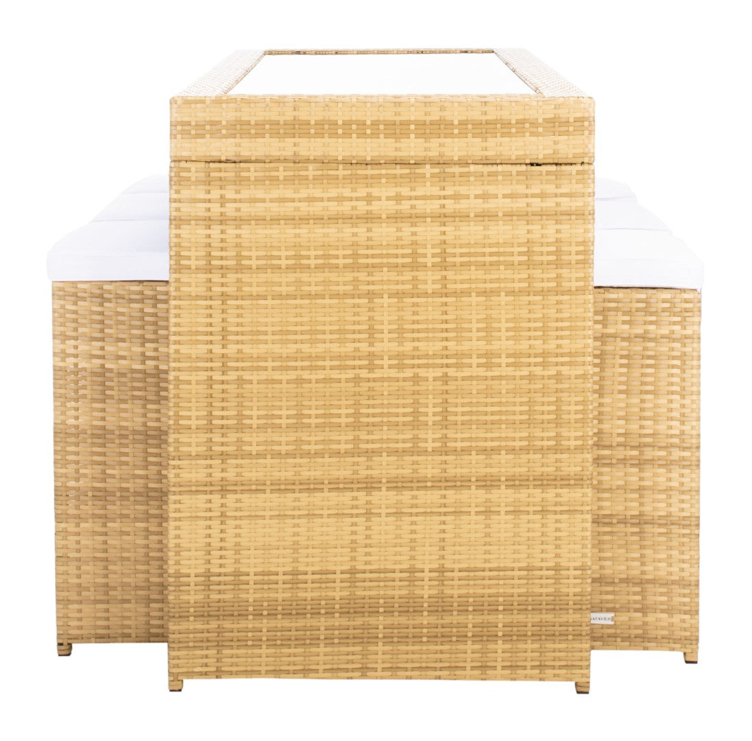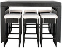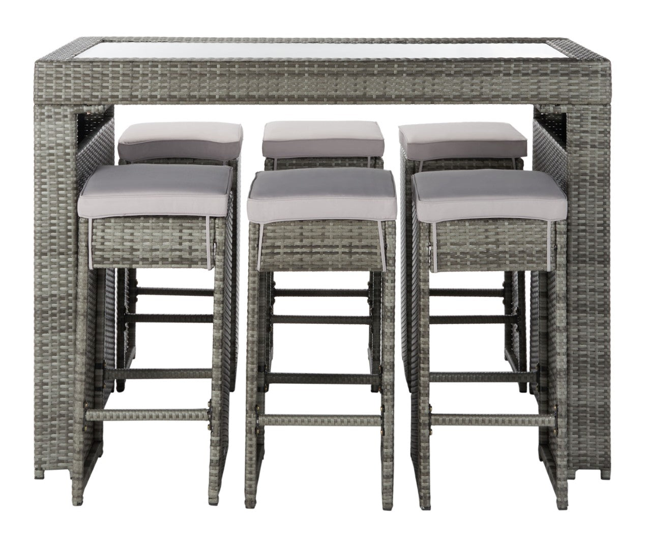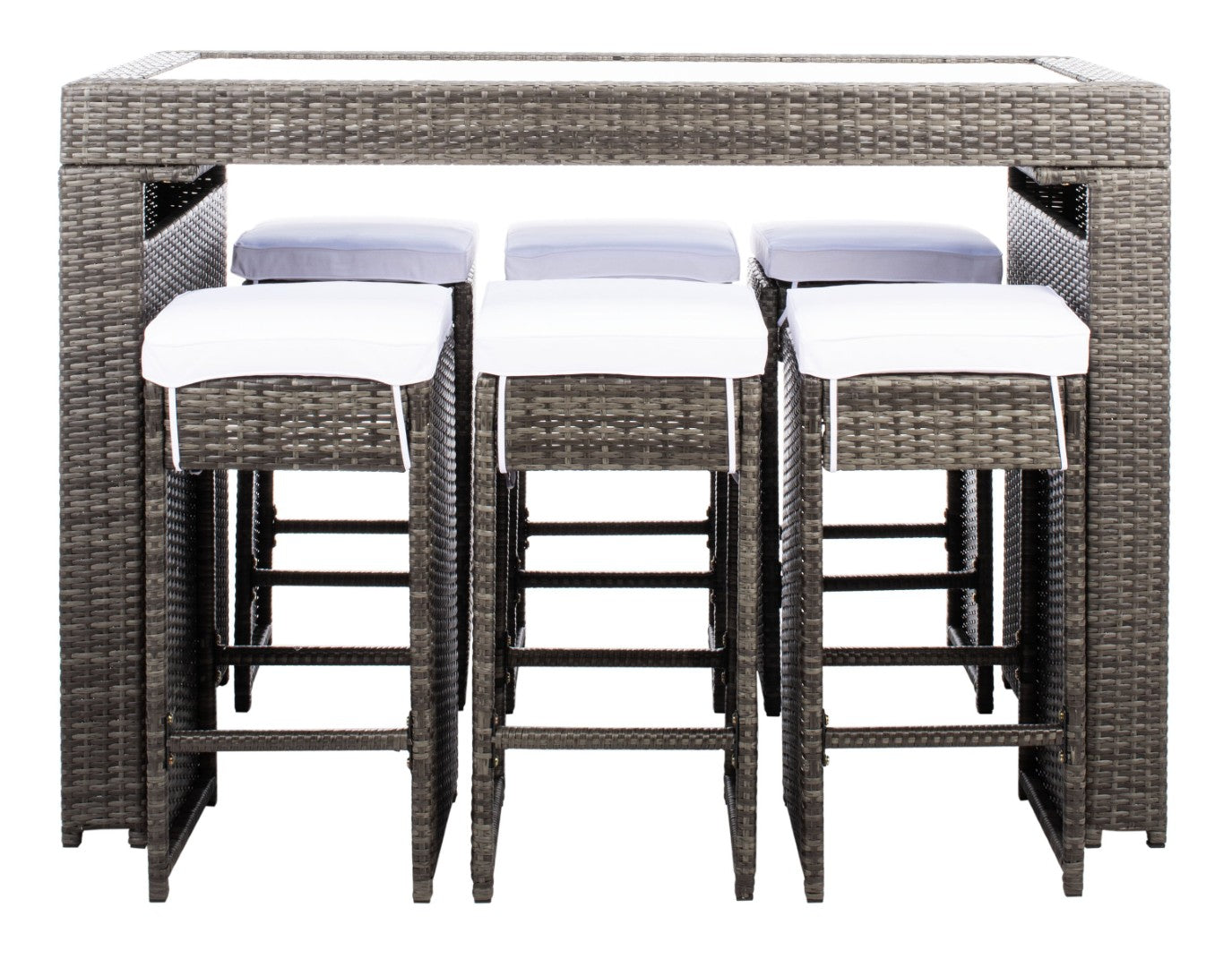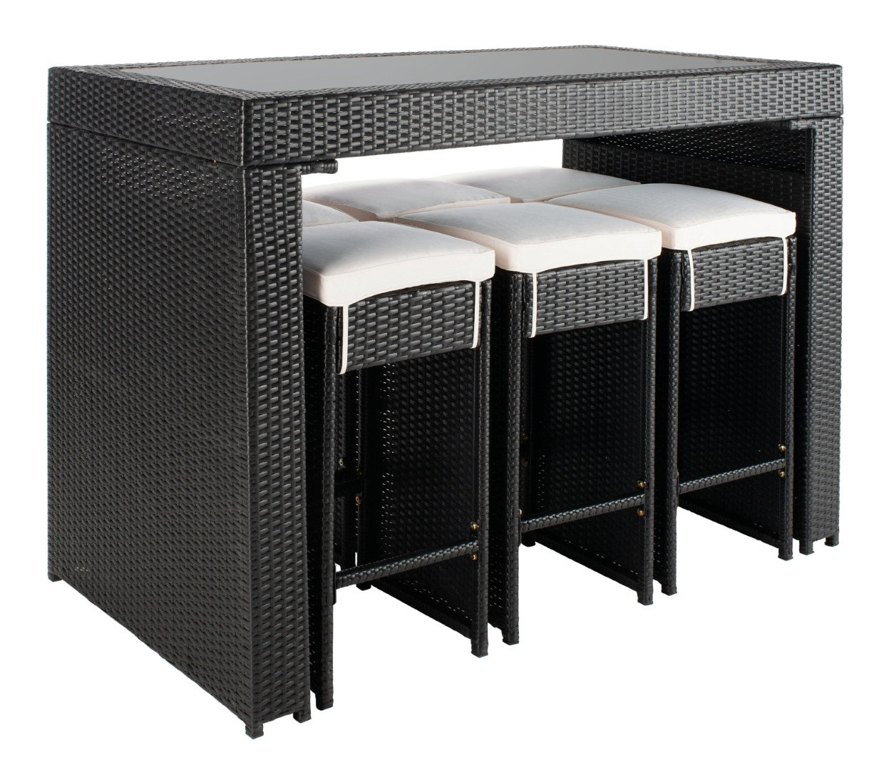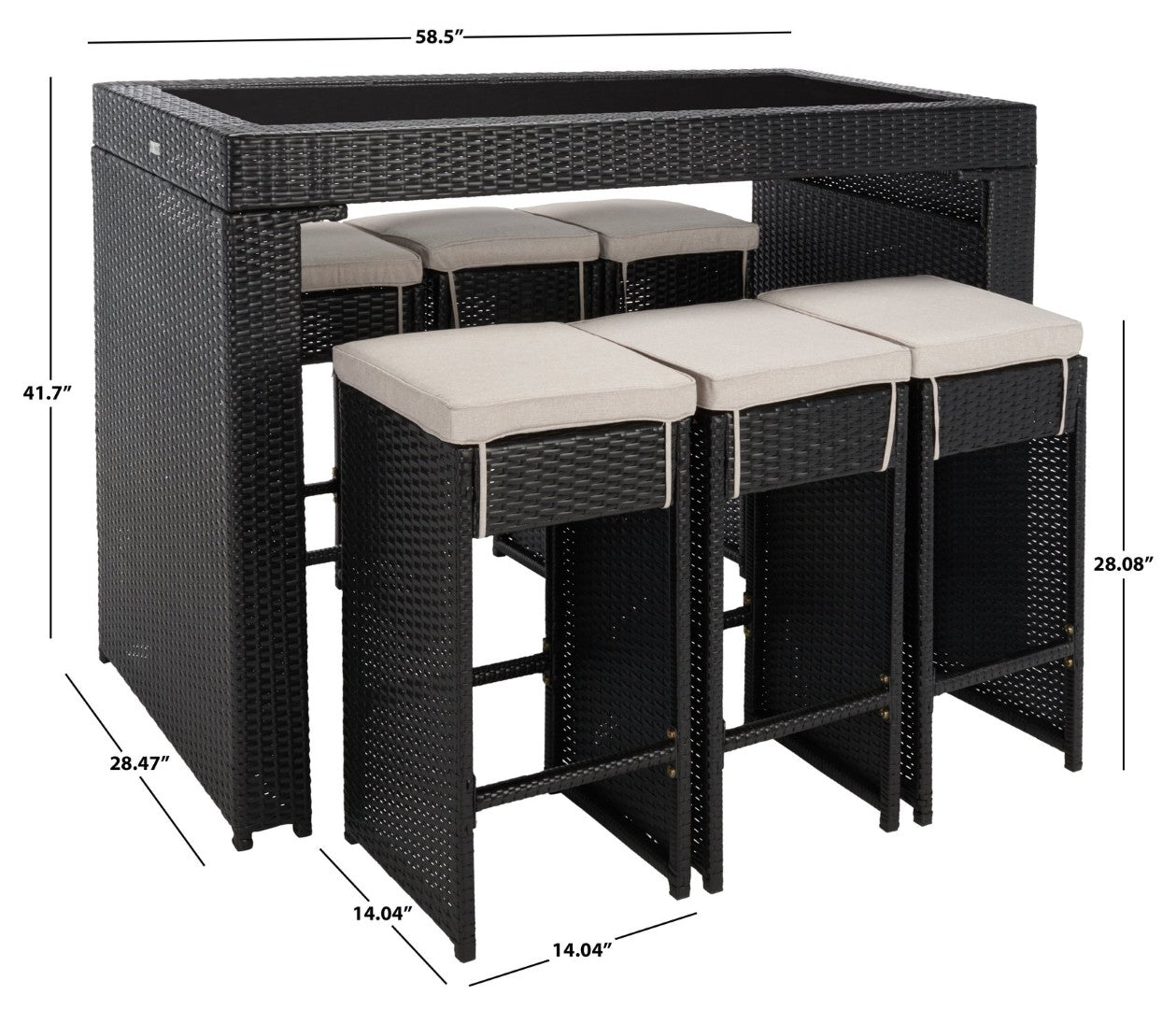 Elevate your outdoor gatherings with this Horus dining set, a refined blend of architectural simplicity and textured elegance. Designed for both style and durability, the set pairs a Parsons-style table with five matching stools, all finished in classic black and softened by plush smart-beige cushions for lasting comfort and curb appeal. Ideal for patios, porches, and alfresco dining, the Horus set balances weather-ready materials with contemporary design to create a welcoming outdoor dining experience.