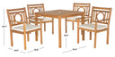 - Set includes: 1 dining table and 4 dining chairs with cushions.