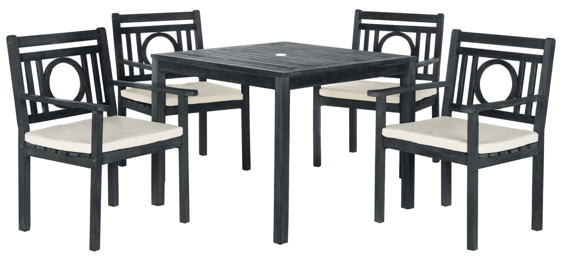 Elevate your outdoor dining area with the Montclair 5-piece dining set, where resort-chic design meets durable craftsmanship. Clean geometric lines, a contemporary circle cut-out motif on the chair backs, and a slatted tabletop create an airy, modern look that complements patios, decks, and poolside spaces. Constructed from acacia wood finished in ash grey and paired with beige all-weather cushions, this set marries comfort and weather-resistant performance for year-round use.