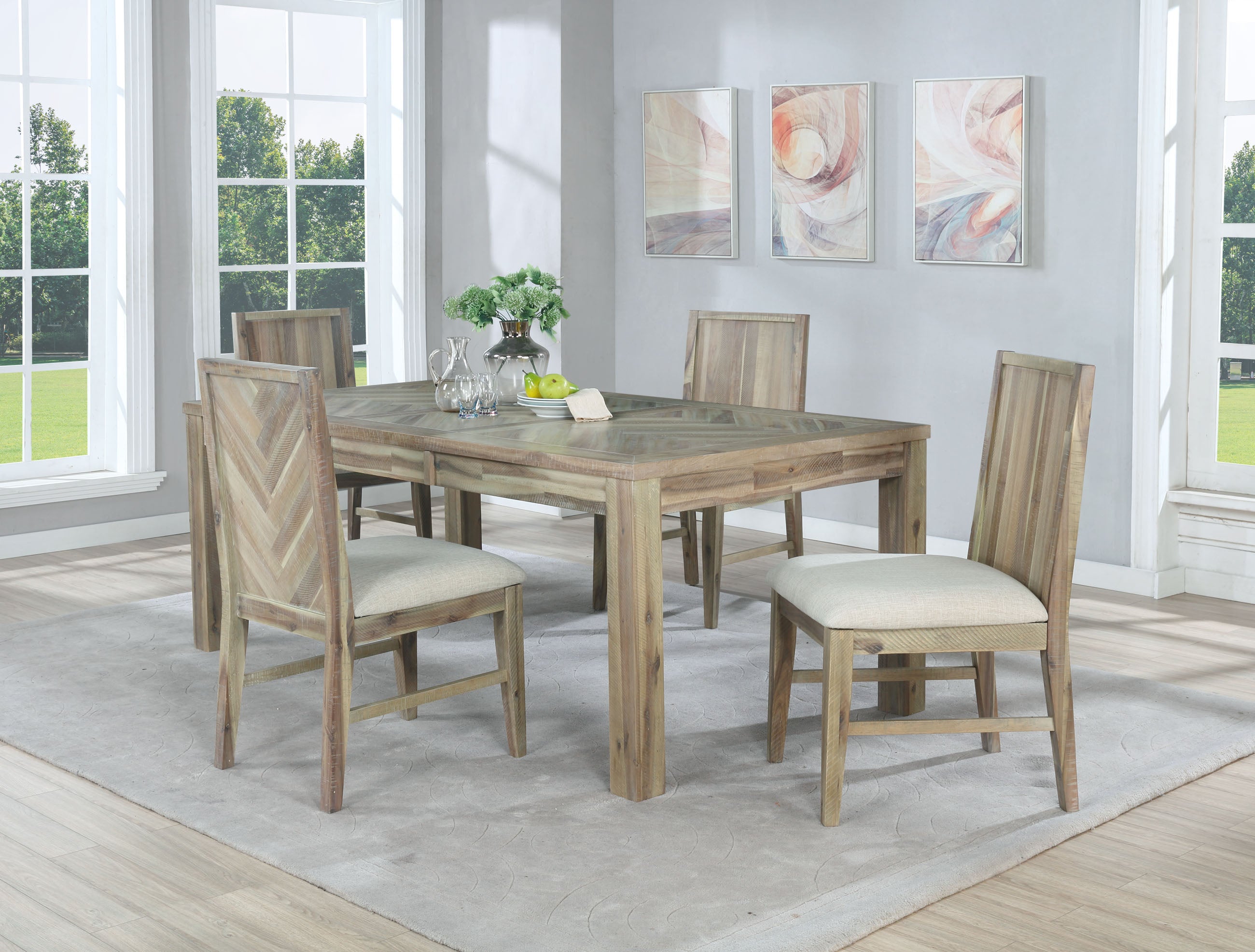 - Feature 4: Distinctive chevron-patterned top is crafted from individual wood planks and adds authentic character to the dining space
