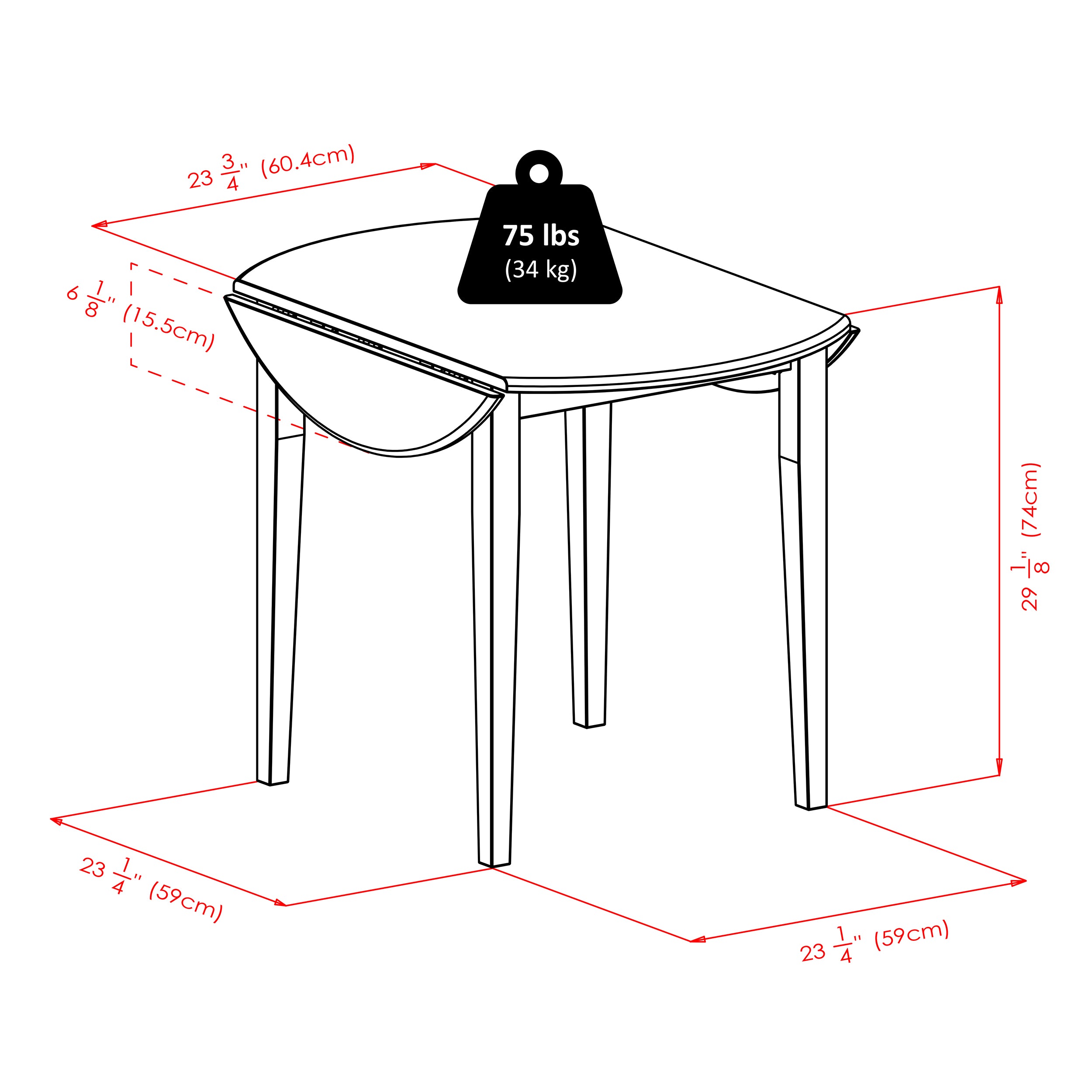 Simplicity and versatility define this 3-piece Clayton Round Drop Leaf Table Set. The table has two drop leaves for added surface space. With two classic ladder back chairs, the set is perfect for the dining area or kitchen. It's also an ideal addition to the family room or for use as an extra workspace. Lower one or both leaves to create the size that's right for you. The chair design with 4 slats on the high back provides comfort with a touch of style. Constructed of solid and composite wood and are finished in a rich Walnut.