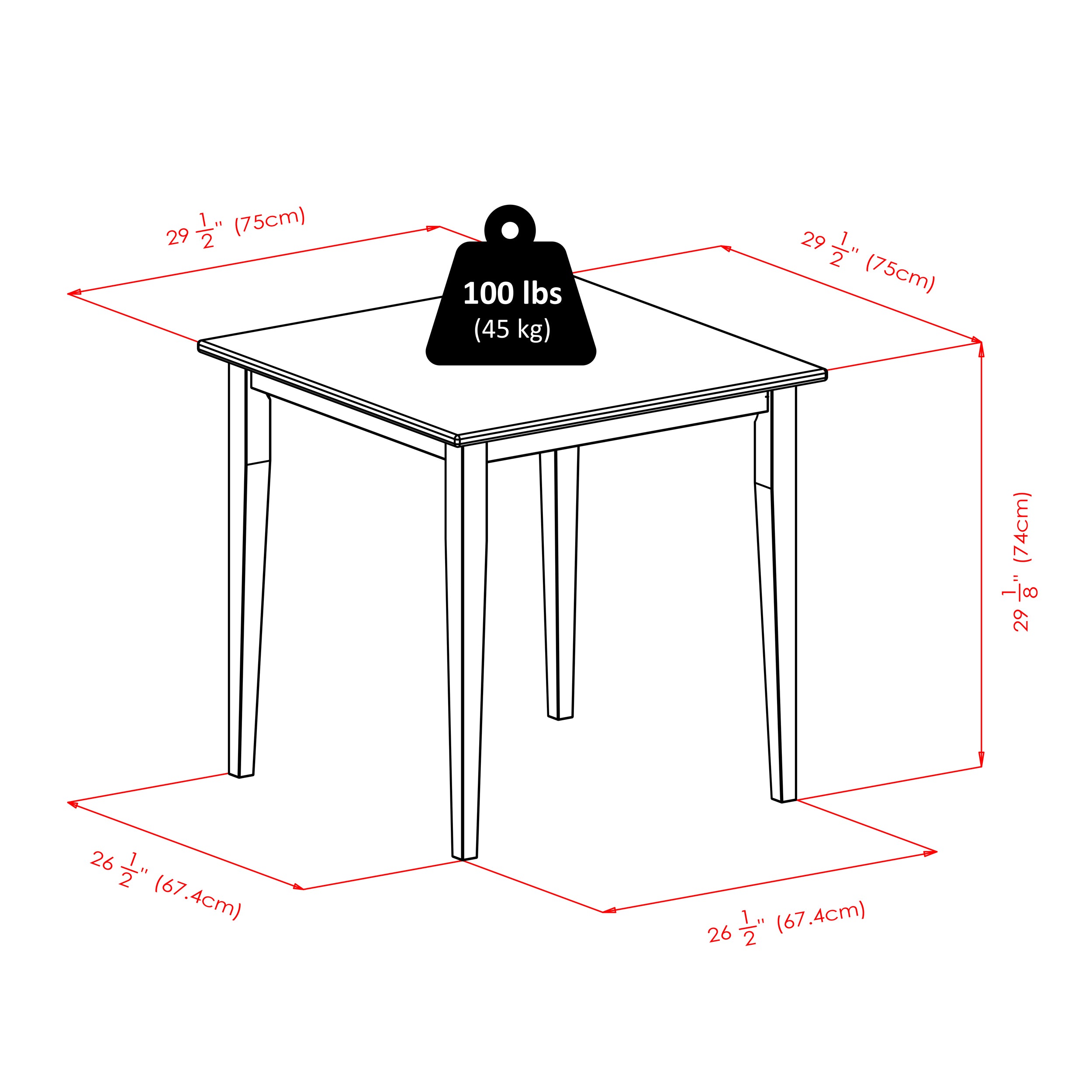 Rich, warm and inviting describe this square Shaker-style dining table. With slightly tapered legs, the classic design combines a look that will go well with many decors and is an ideal size for a kitchen or dining room. 3-Pc Table and Chairs Set.