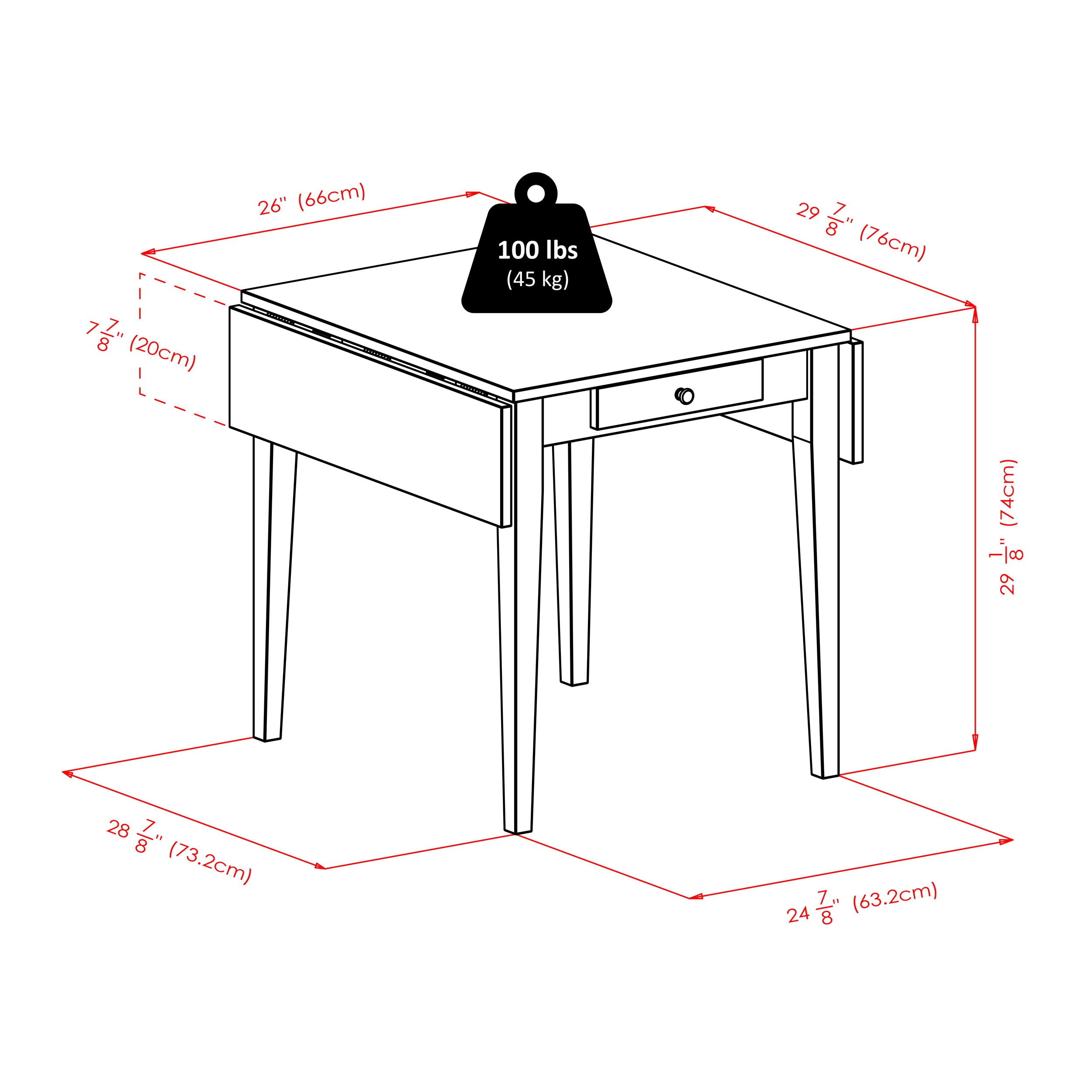 - Table Fully Extended size : 41.73"W x 30.55"D x 29.13"H. 2 Drop Leaf, Each is 7.88W x 30.55"D.