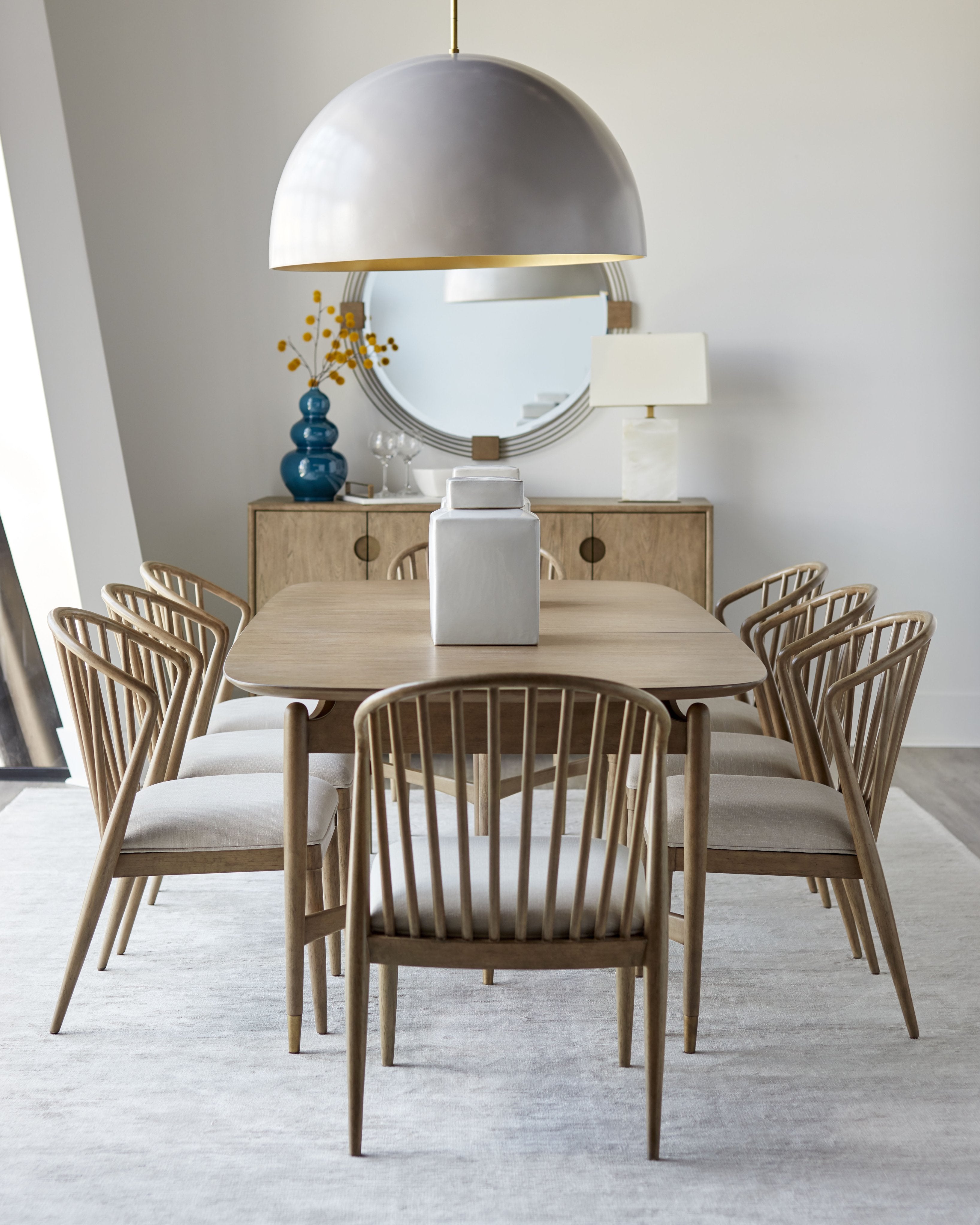 Classic vintage elements inspired the Finn collection, celebrating the birth of mid century modern design with an updated perspective that suits the 21st century aesthetic. Simple, clean lines and solid heirloom quality construction are complemented by rounded forms and the organic beauty of wood grain and natural hand-applied woven raffia, creating a beautiful study in contrast.