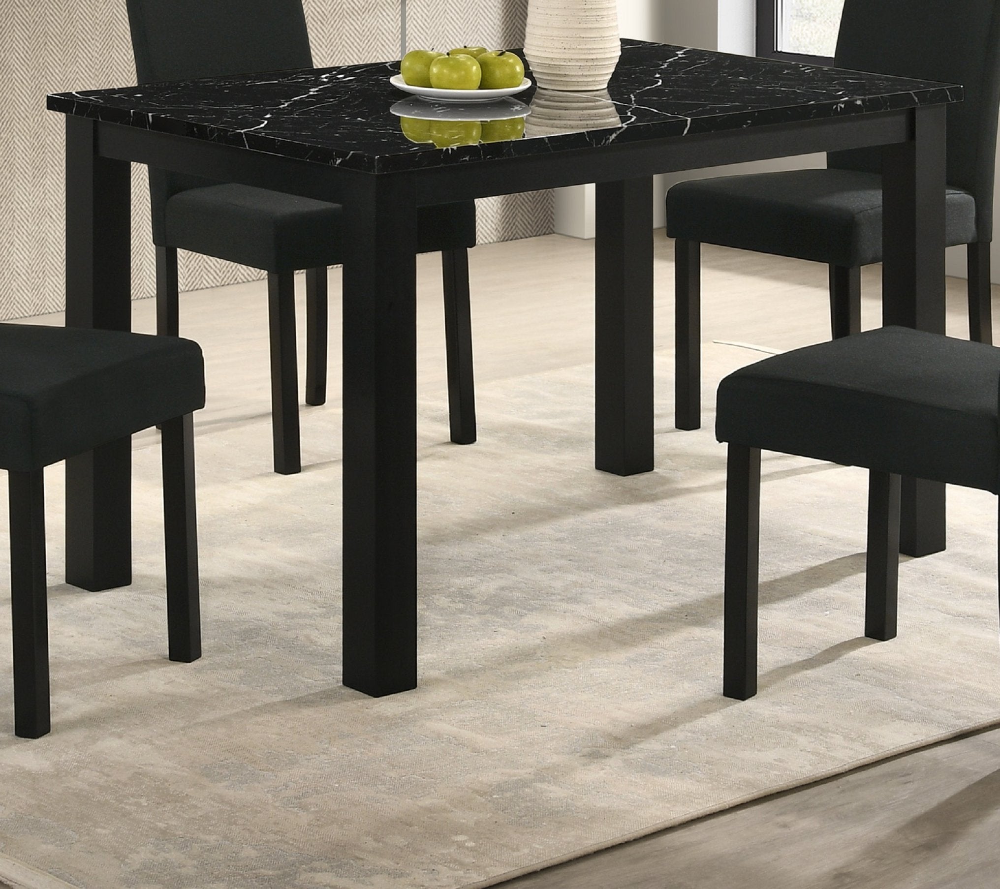 Elevate your dining space with a modern, minimalist table that blends sleek style and practical durability. The faux-marble top offers a refined, high-end look while resisting stains and wiping clean easily, and the sturdy black-finished wooden base provides stable support and contemporary appeal. Ideal for compact dining areas, kitchens, or as a versatile accent table for entertaining.