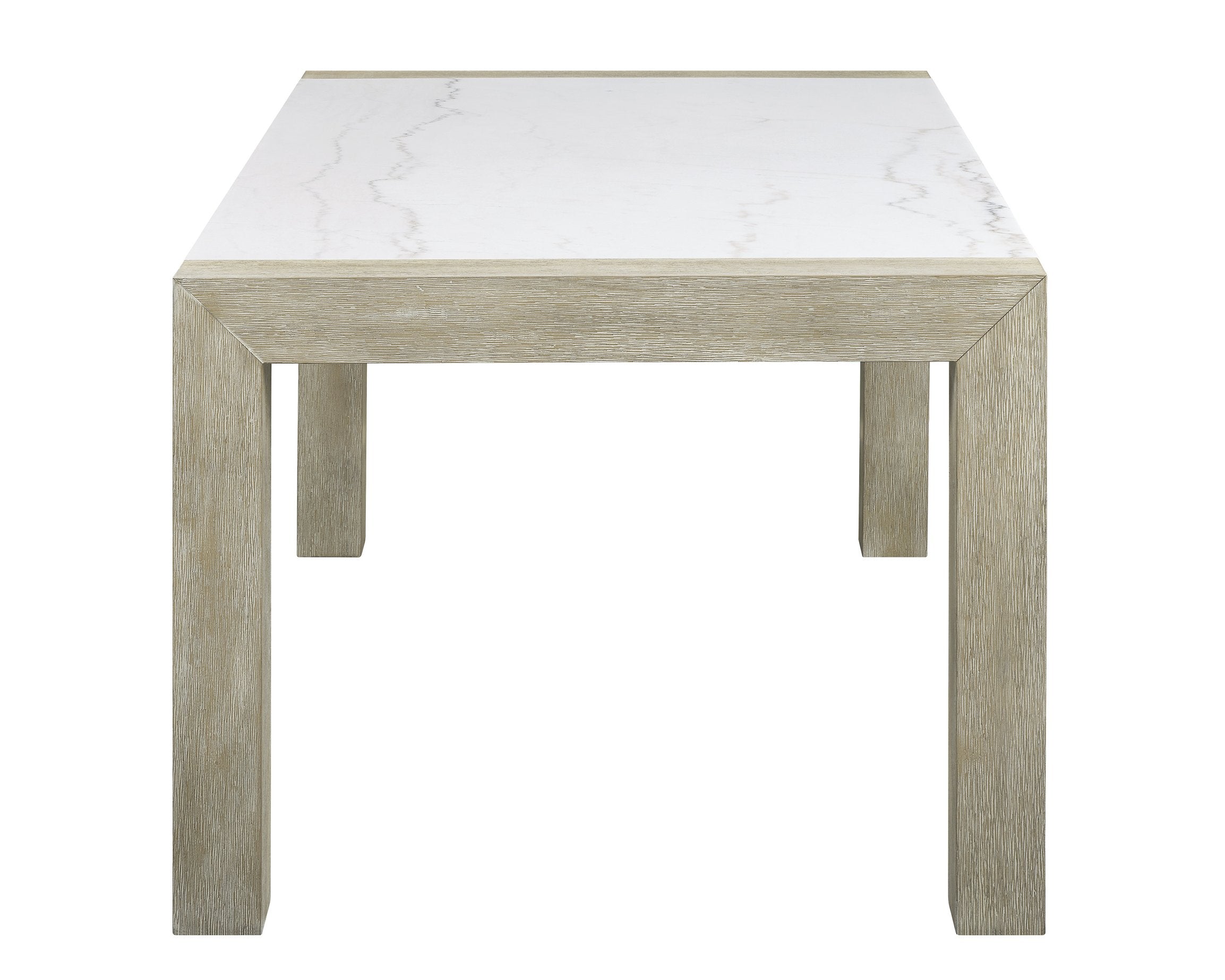 Elevate your dining room with this contemporary solid-wood veneer dining table topped with genuine white marble. Its glossy, reflective surface and clean rectangular silhouette create a striking centerpiece that blends modern luxury with everyday functionality—ideal for formal dinners, entertaining guests, or family meals.