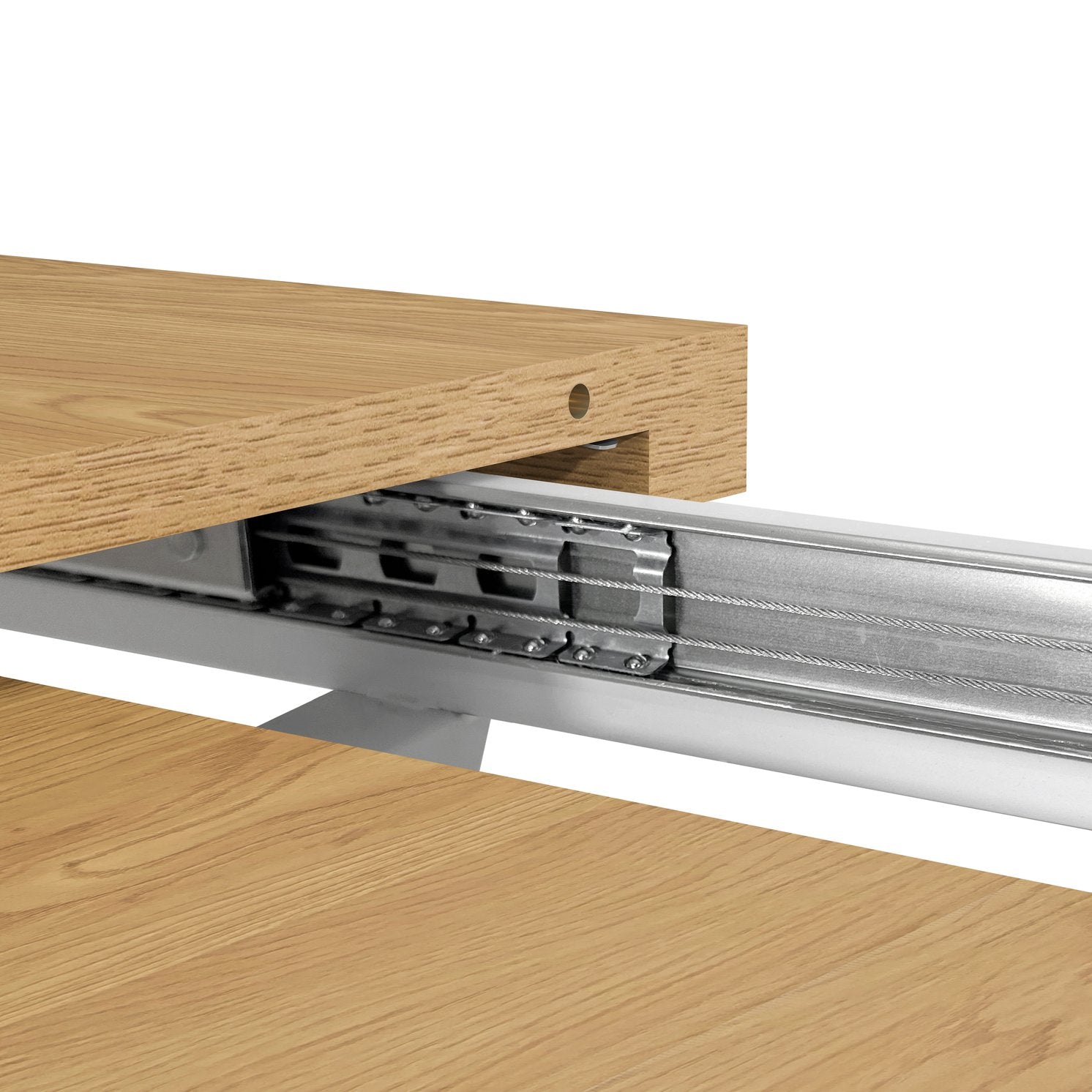 Enjoy versatile dining and effortless hosting with this retractable dining table crafted in a warm original wood finish. Designed to adapt to your space and needs, it blends solid craftsmanship with modern industrial touches—featuring a sturdy cross metal base and stainless steel tubing—to seat 4–6 people comfortably while extending when guests arrive.