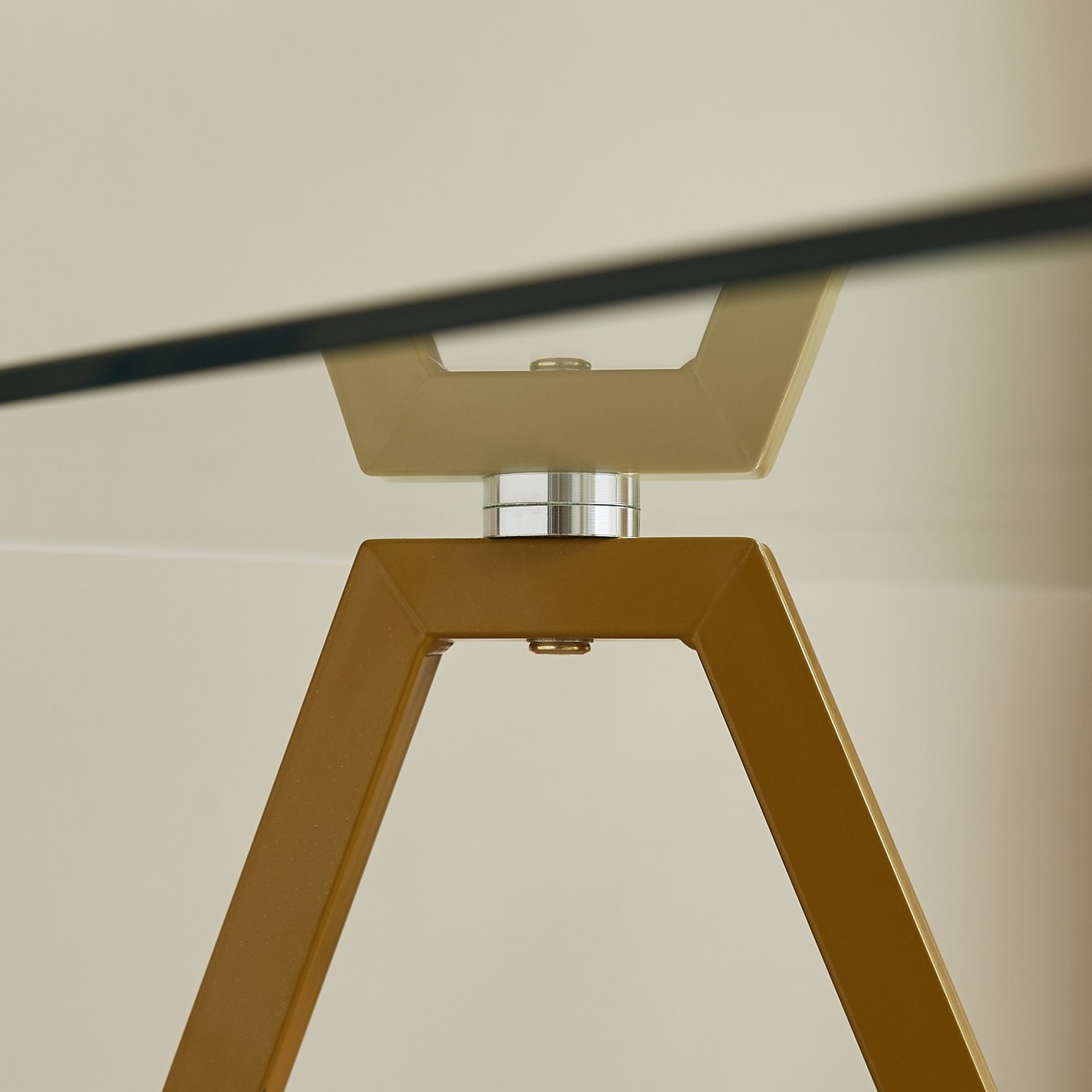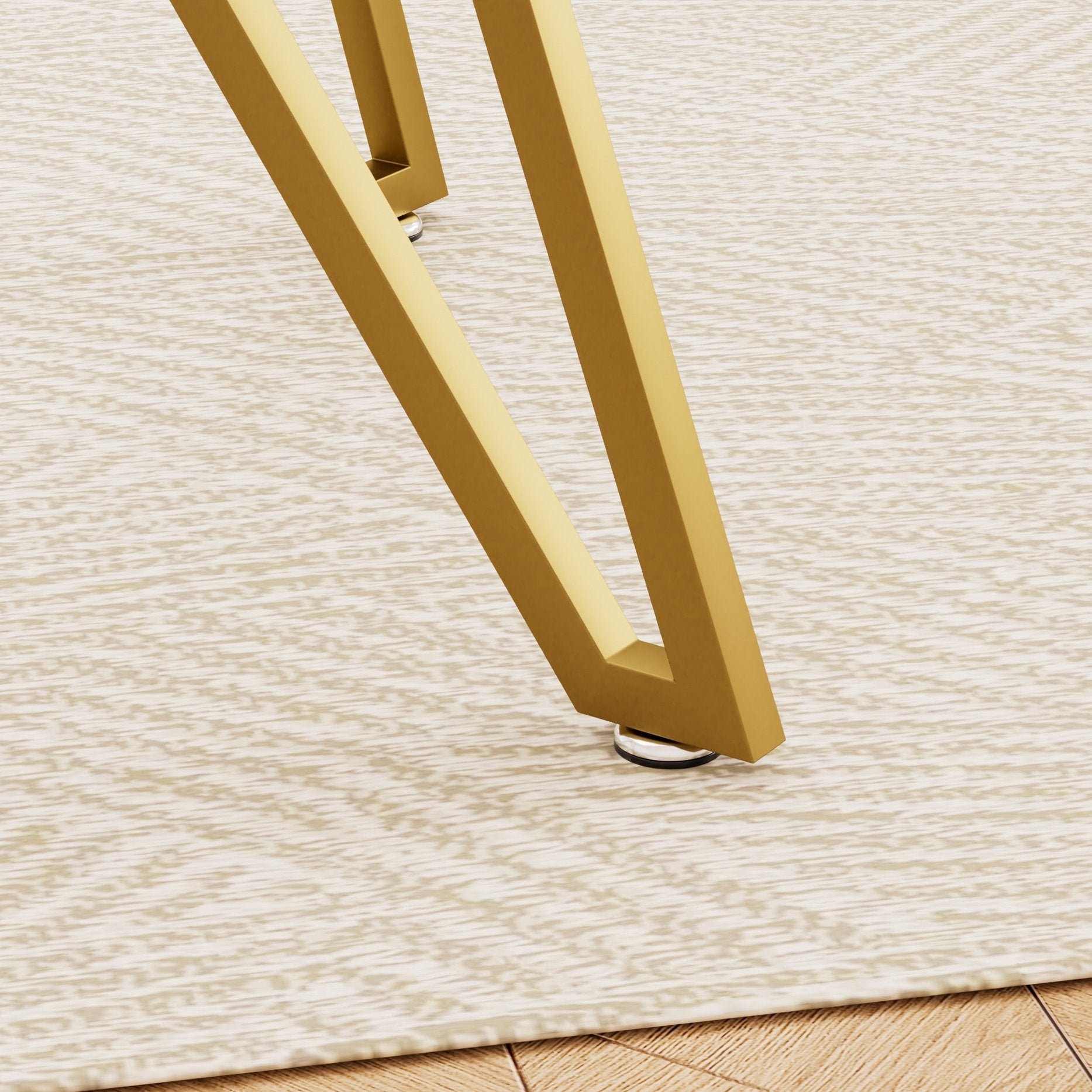 - Materials: Tempered glass tabletop with sturdy gold-finish metal legs for stability and visual appeal