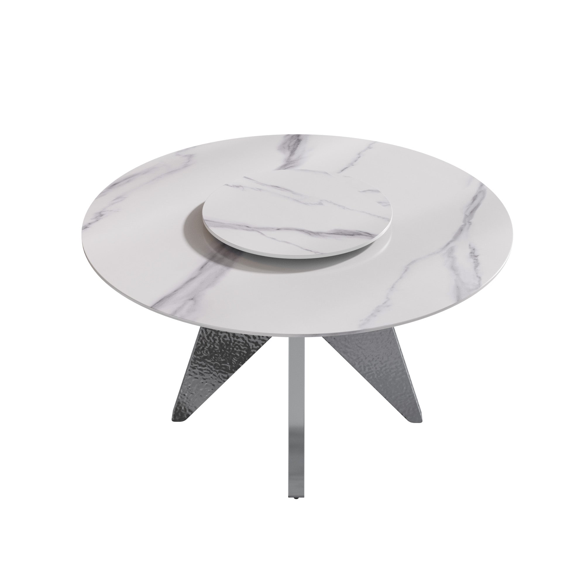 Upgrade your dining space with a sleek, contemporary table that combines the look of real marble with durable, low-maintenance materials. This 53" round dining table offers generous seating for six, a sturdy stainless steel pedestal base, and a smooth rotating turntable for easy sharing. Thoughtfully engineered for everyday use, it balances modern style and practical performance—ideal for family meals, entertaining, or as a statement centerpiece.