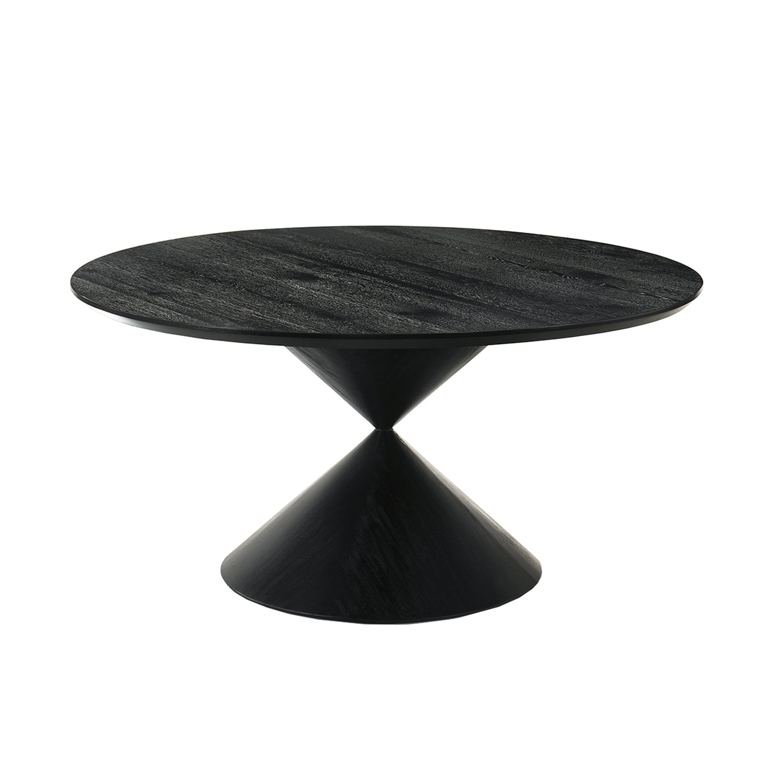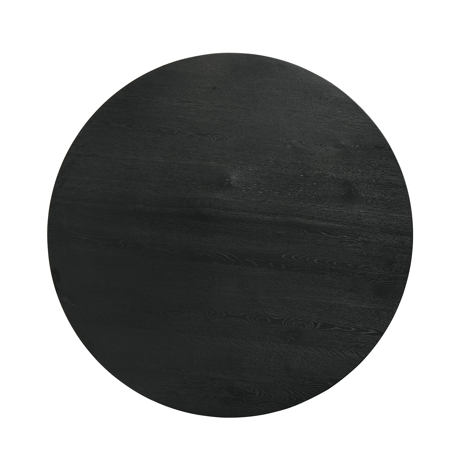 Make a memorable centerpiece for your dining room with this striking round pedestal table. The dramatic hourglass base and deep ebony black finish combine contemporary silhouette with timeless elegance, creating a versatile piece that anchors your space while maximizing seating and flow. Built to comfortably host family meals or dinner parties, it balances form and function for everyday use and special occasions.