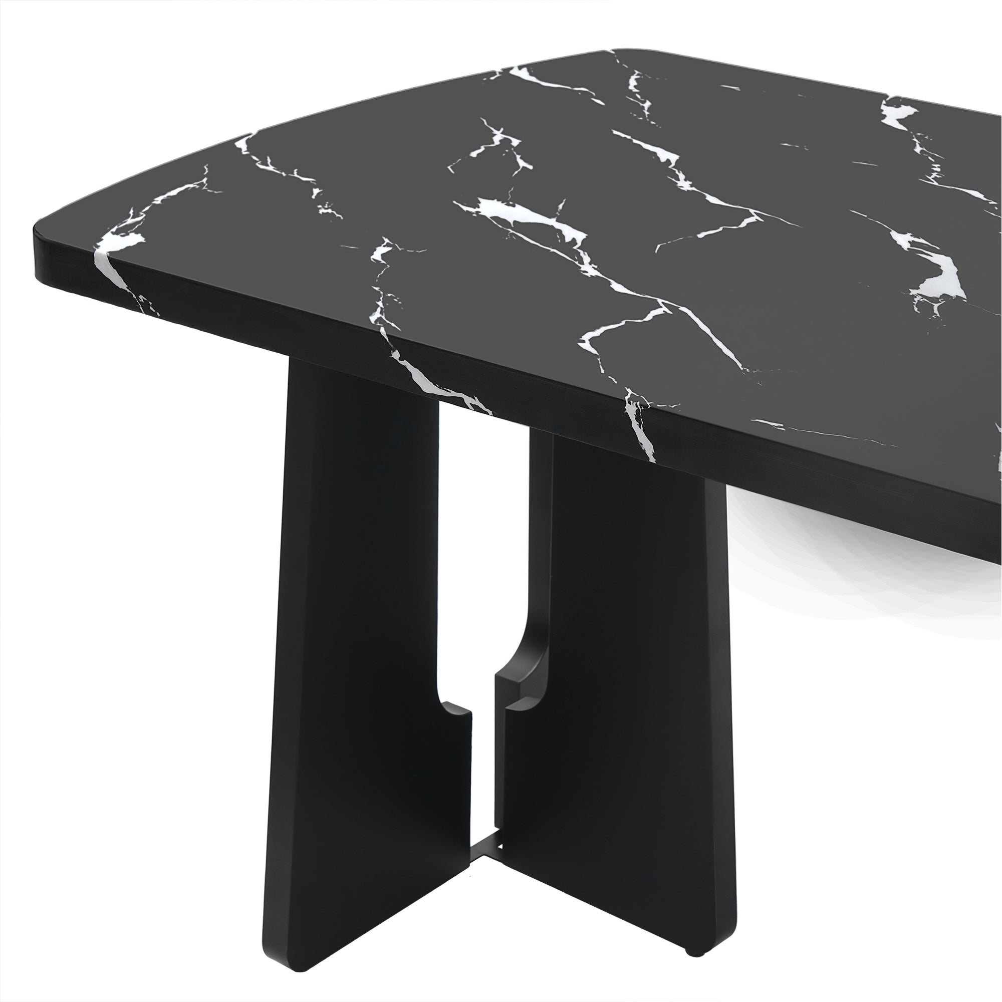 Elevate your dining or workspace with a sleek, modern table that combines the luxe look of marble with durable, easy-care materials. This statement piece features a striking black-and-white faux marble top and geometric rubberwood legs that provide contemporary style and stable support—ideal for homes, apartments, or offices seeking a refined, minimal aesthetic.