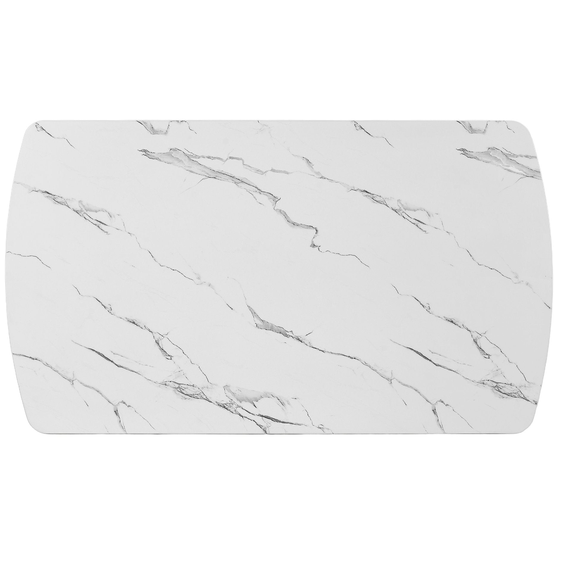 - Stylish Design: The table features a sleek faux marble surface that mimics the luxurious look of natural marble. Its unique three-plate table leg design is not only visually appealing but also provides exceptional stability, ensuring the table stays firm and secure during use. The combination of the marble-like tabletop and the chic table legs creates a modern and stylish look that can effortlessly elevate the overall ambiance of your dining space.