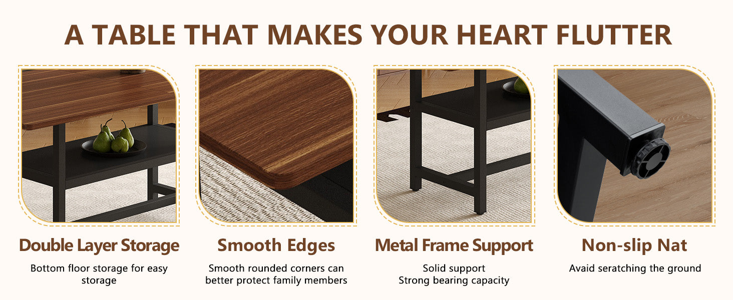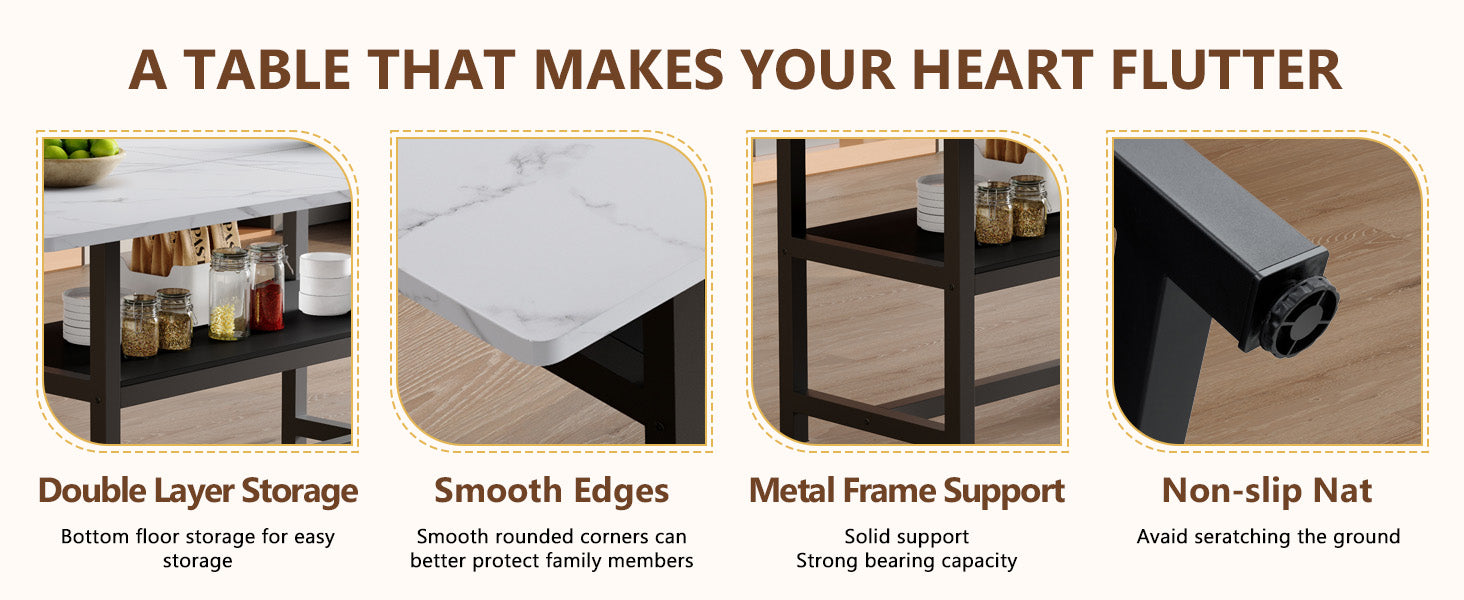 - Practical compartment: There is a 43.3-inch long and 19.7-inch wide storage platform below, which is convenient for placing commonly used tableware, napkins, or favorite books and magazines. It is both practical and adds a touch of life.